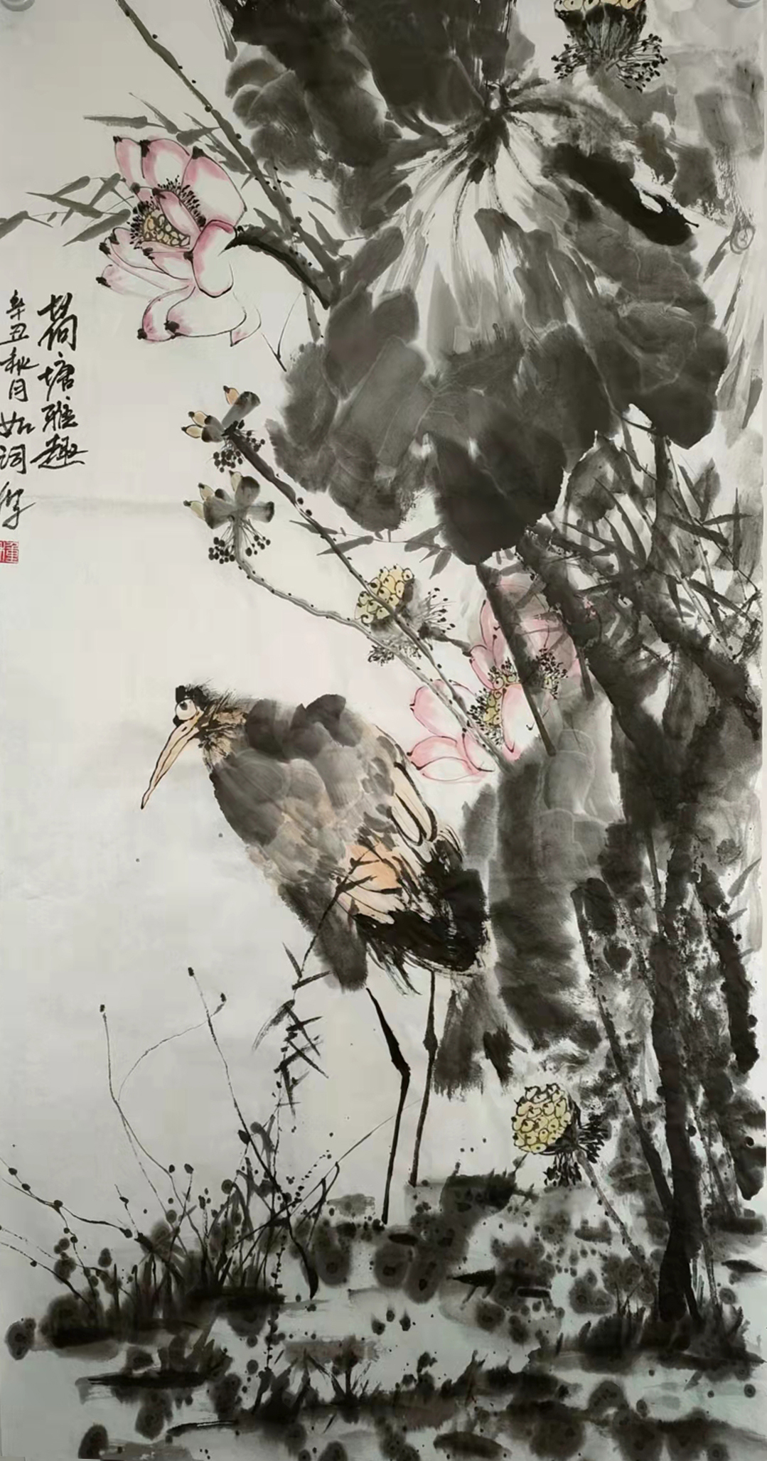 种如词,女,山东枣庄人,现居泰山南麓。自幼在画家父亲的影响下而学习绘画,青岛科大艺术系毕业,传统文化修养与专业绘画技法深厚,墨耕不辍十余载,现主攻花鸟画,尤擅墨荷、江南水乡系列,兼绘禅道人物系列!画家笔下的荷花素净纯美、潇洒飘逸,充满闲情逸趣!江南水乡系列画家更多的是从女性内心角度出发用柔美的线条、精妙的布局、多彩的色调,以点、线为主体语言的手法将江南水乡之景挥洒在宣纸之上,笔法洒脱而不失女性内心独有的细腻。画家现为市级美术家协会会员,市级工笔画协会会员,东岳巾帼书画院专职画家。