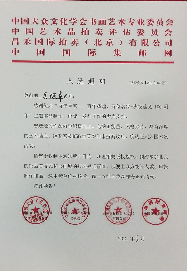 中国书画家协会会员,中国华夏万里行书画家协会会员,山东省书法家协会会员,滕州市书法家协会理事,滕州市老年书画协会理事。