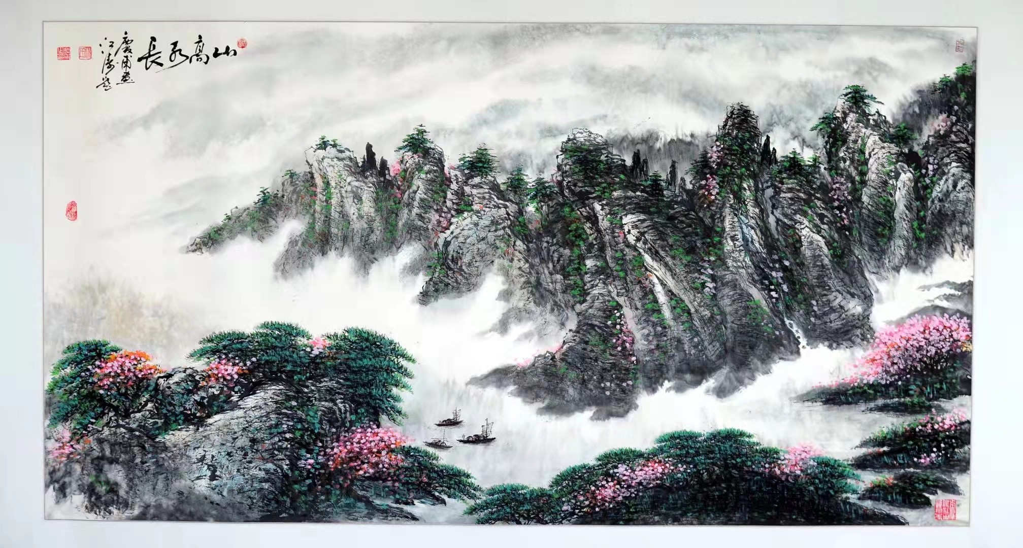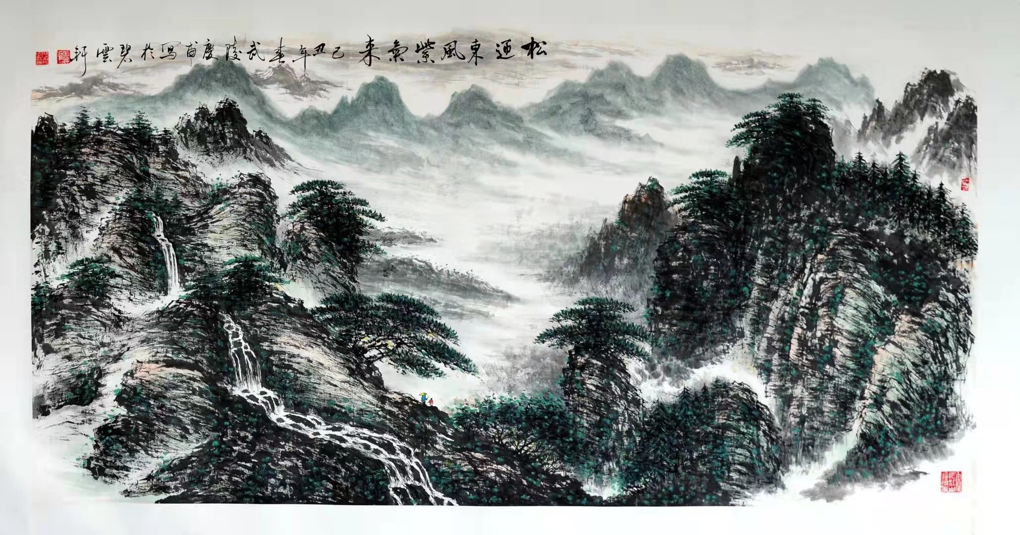 师益贤门修真功,法道造化生气韵。他的山水画,表现出博大精深的传统审美体系与现代表现手法进行融渡的主动意识,依造型而成形美,依墨韵而得性灵,章法布置涵养哲理,干湿浓淡,疏密长短,高远深遂等等这些天地的对照和矛盾,被他很有智慧地在画面中统一起来,呈现出来的正是天人合一的境界,也是独与天地精神来往的深刻。山水大师,必然哲学正道,果然不错!