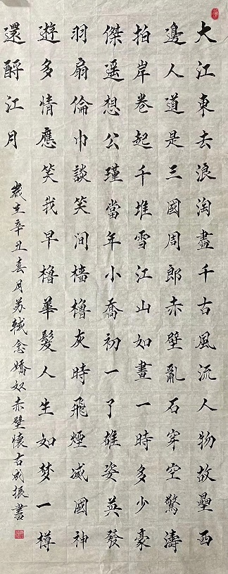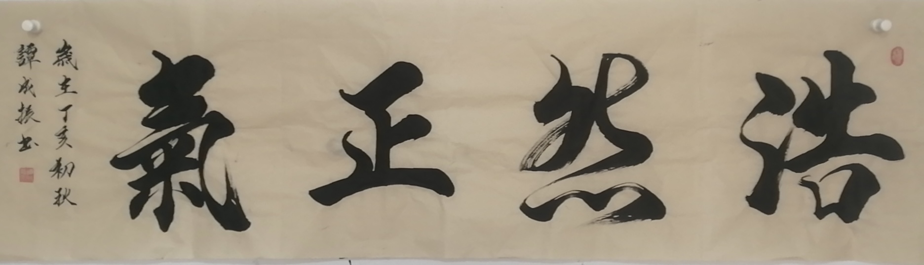 谭成振、字云飞、号清雅居土,男,汉族,1970年出生于山东省巨里野县,14岁开始研习书法,以欧阳询、柳公权、黄庭坚楷书为基础,以书之妙道,神采为上为书法之真谛,默临《吴飞经》《兰亭序》等经典,至今已三十余载,擅长榜书,其楹联及书法作品在省级和全国大赛中多次获奖。书法劲健雄厚,洒脱漂逸,给人一种赏心悦目之美。