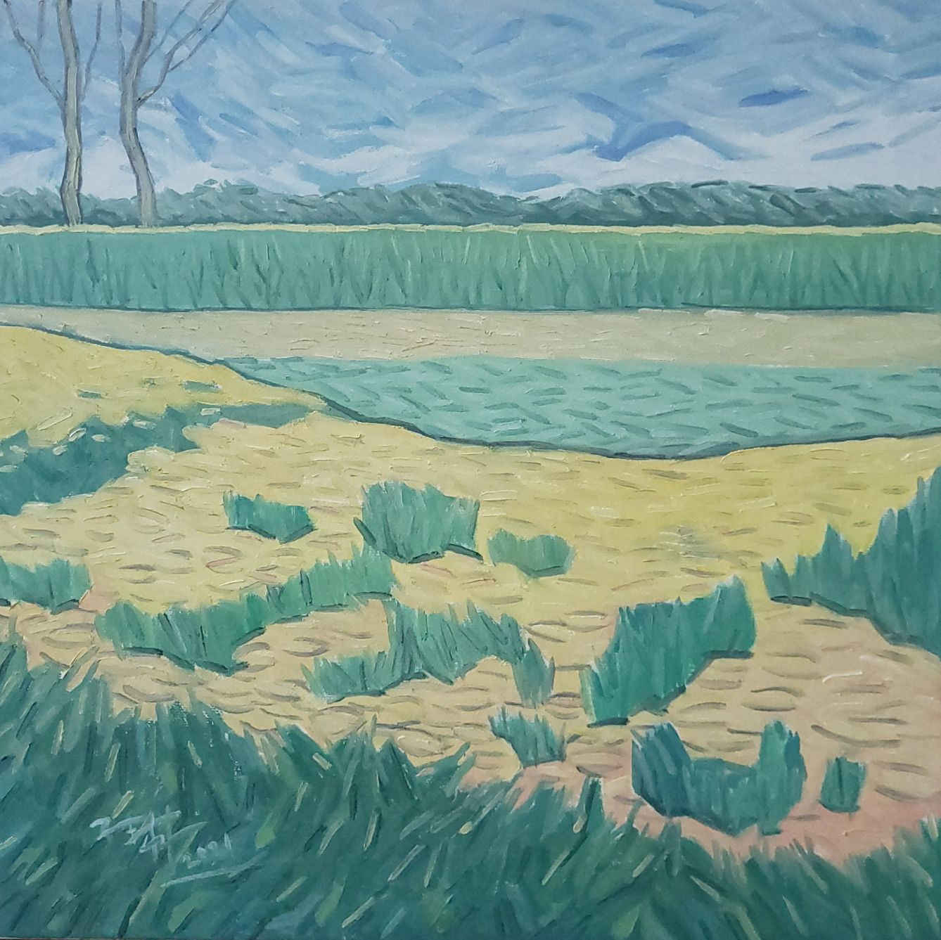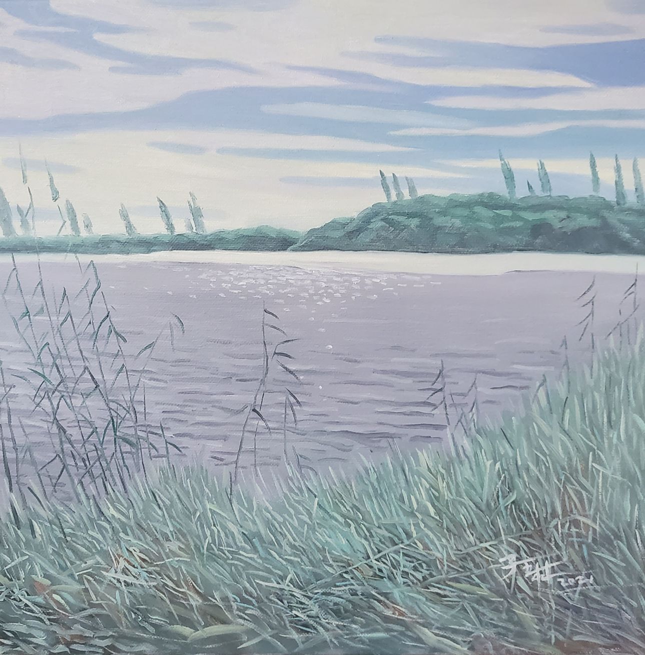 创作题材和灵感都来自于朴实无华的生活,不管是什么样的题材创作,最初都源于这个景或者事物对我有所打动,好的作品无论是当代还是风景,亦或是人物,每一幅画都有自己的灵魂和故事,没有灵魂的画即便技术再高超也无能打动人心,我创作的每一个作品,没有浮夸的炫技,每一副风景,都是一个故事,我把这它们通过自己的理解通过画作为媒介展现我自己的理解和想要表达的情感。