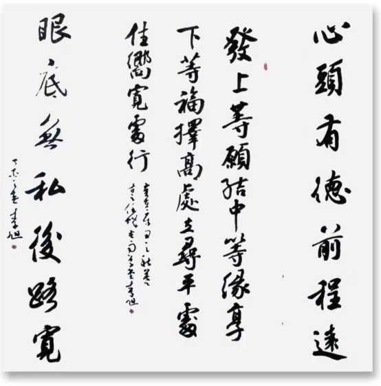李旭出生于书香门第,自幼酷爱书法,涉猎诸体,尤擅行草。多年精心临摹颜真卿、欧阳询、王羲之、怀素、张旭,后得到书法大家欧阳中石指点,书法水平得到很大提升。李旭的行书神清骨秀,如行云流水,飘逸峻拔,筋骨老健,自具风神。苍劲有力,笔走龙蛇,让人深深被他对笔墨的驾驭能力叹为观止。