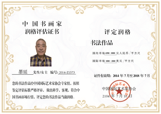 墨延,中国书画家协会会员,中国书画艺术研究院副院长,国家一级美术师,国际书画家联合会副会长。