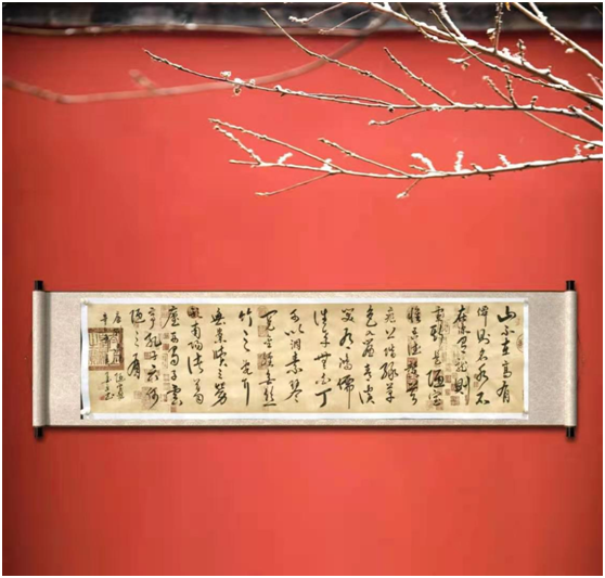 2017年影视巨星成龙在西安饭店收藏《大江》与《陋室铭》行草书法作品。