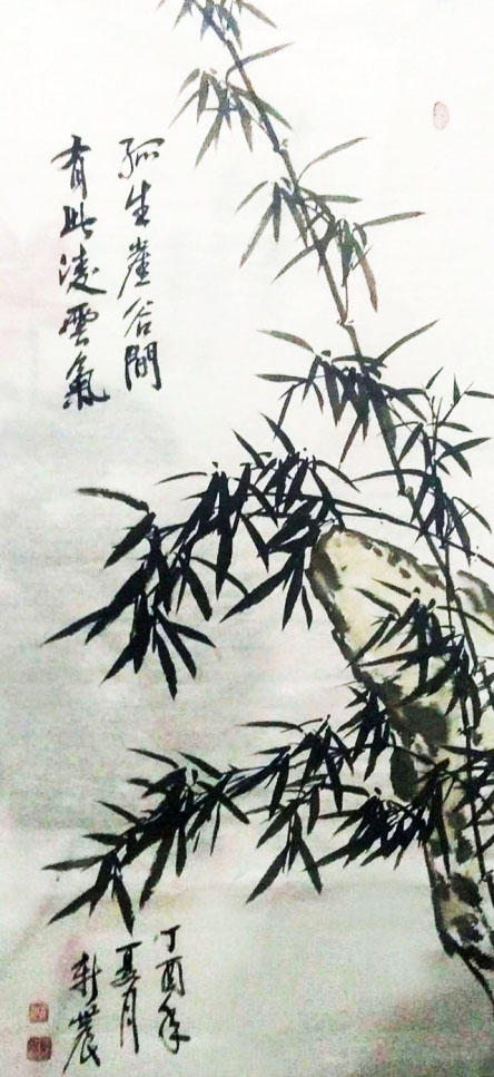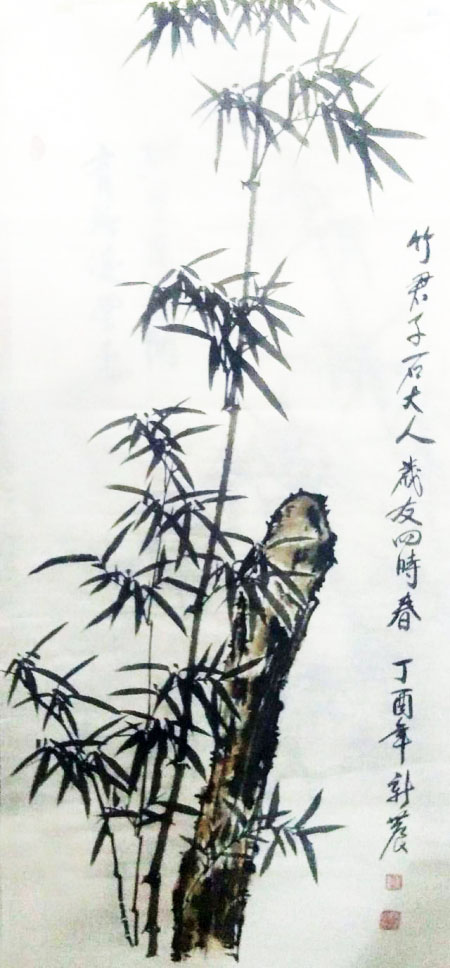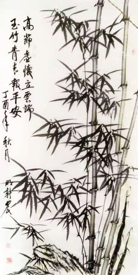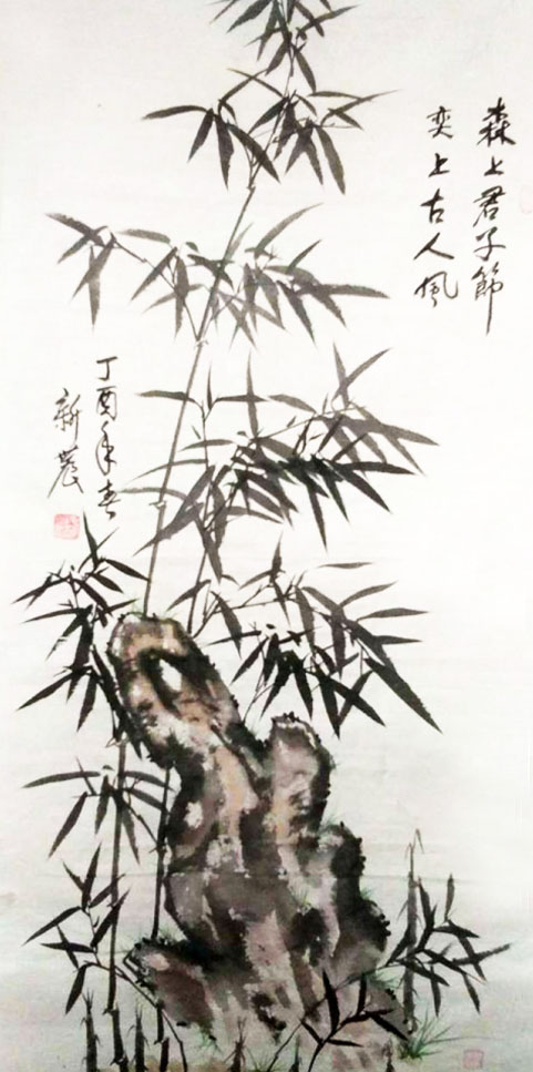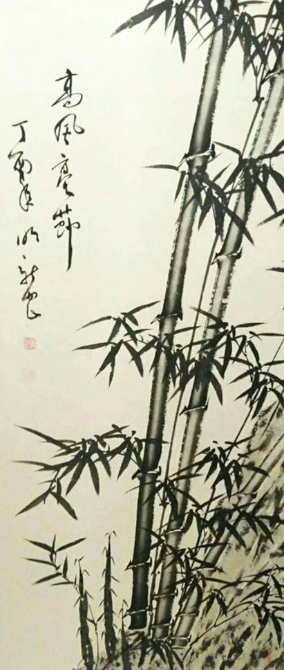 先生画竹,极见功夫。远师东坡,善写红竹意。后师板桥,能寓风霜骨。这是他画竹可以取法为上,经由磨砺,得法亦为上乘的根本原因。先生有强于写生的水准,看竹影写竹品,清虚劲节,走的是郑板桥画竹听风雨诉民生的路子,其竹瘦硬,骨骼清奇。却又泊入血肉之相,瘦不失腴,强调了生态,让天然竹和心意竹合为一体,更能切入现代人的审美意识,在观赏价值上贵有笔墨当随时代的创新价值。装饰万家屏障,非常接地气,他让文人画与大众审美密切相关,不孤傲,多亲和。这正是先生的竹画作品雅俗共识,贵有大众审美口碑的重要原因。也是先生画笔师于上法,得于自处的独特。师而不拘,莫不如此!