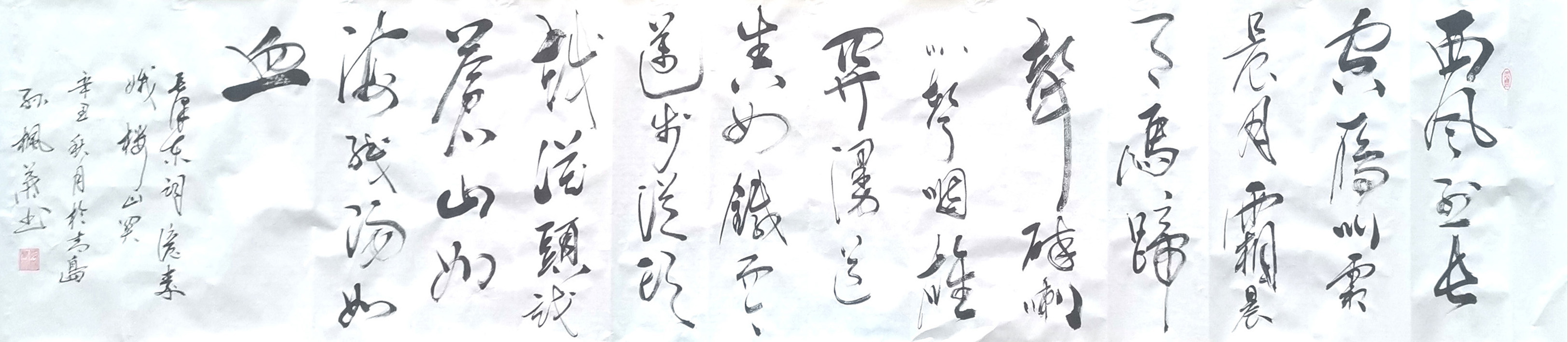 孙枫叶字秋红, 笔号布衣墨客。原名孙丰业。1959年生山东省济南市商河县玉皇庙镇前孙村人。1977年商河三中高中毕业毕业后务农,在村是红白事账房先生,自小爱好书法广临名家书帖刻苦学习,学习名家之长,2O18年加入中国书画百科网又加入中国书画网I。2018年10月加入启航新时代书画领军人物证书。荣获农民书法家称号。2019年元月加入中国青岛民超书画研究院会员。2019年3月加入庆祝中华人民共和国成立七十周年文献类珍藏邮册。2019年4月参加今网书画活动获得著名书法家荣誉称号,并上36头条作品专辑百度网。2O2O年1月获得书画传承人物荣誉证书。2O2O年6月加入中國書法家協會。2020年6月〈荣耀中国杯〉全国书画大赛获得优秀奖。2020年10月在〈人民功勋艺术家〉活动中特授予"人民功勋艺术家”荣誉称号。2021年5月参加中国共产党建立100周年邮集活动。