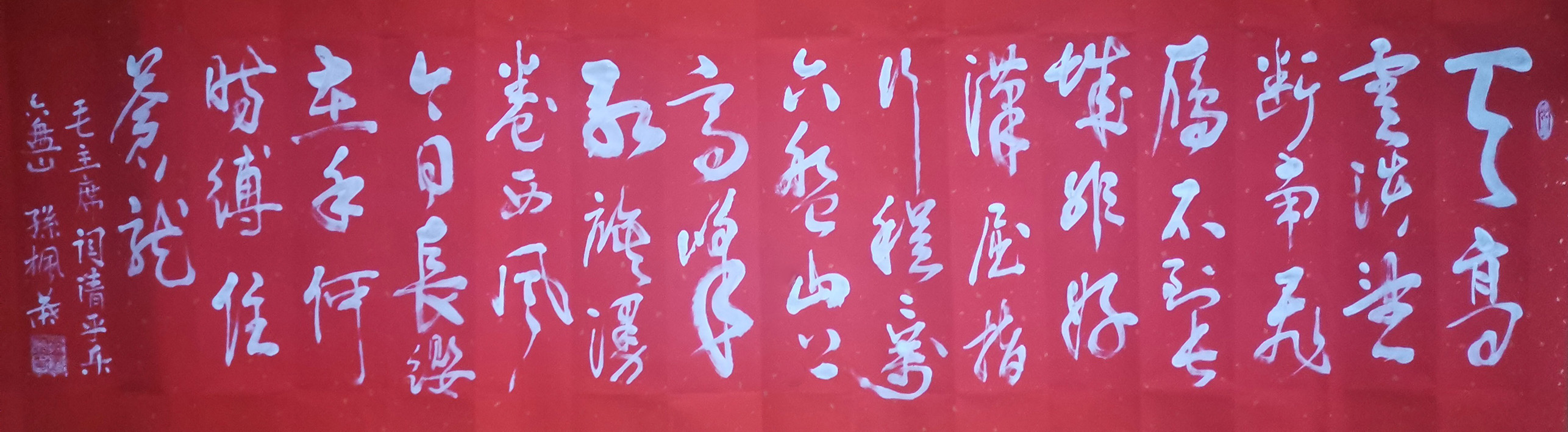 孙枫叶字秋红, 笔号布衣墨客。原名孙丰业。1959年生山东省济南市商河县玉皇庙镇前孙村人,中国青岛民超书画研究院会员。
