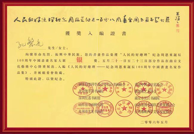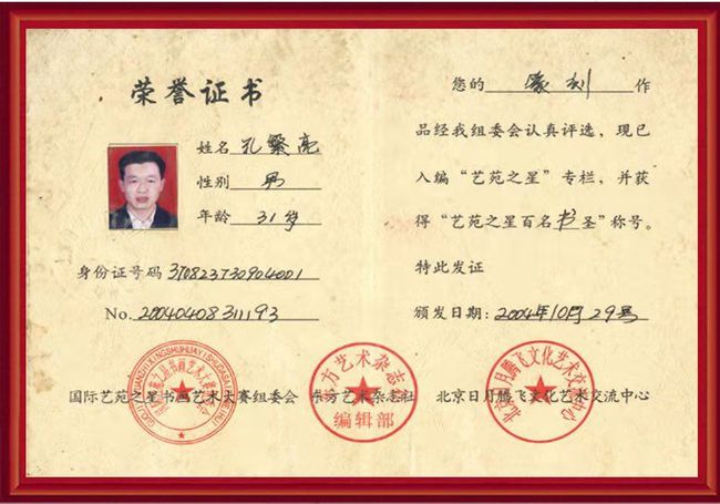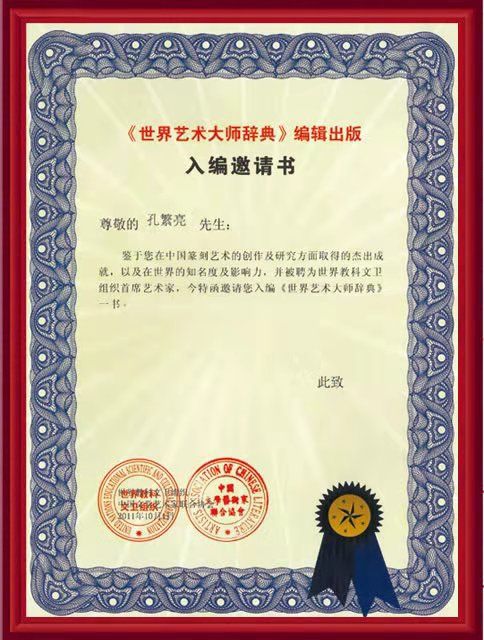 自九十年代以来,先后在国内外巡回展览,现场篆刻,其作品多次参加世界、全国权威大赛并获奖。现聘为万杰画院篆刻师,醒醉书画院特聘副院长、昊行印社社长。