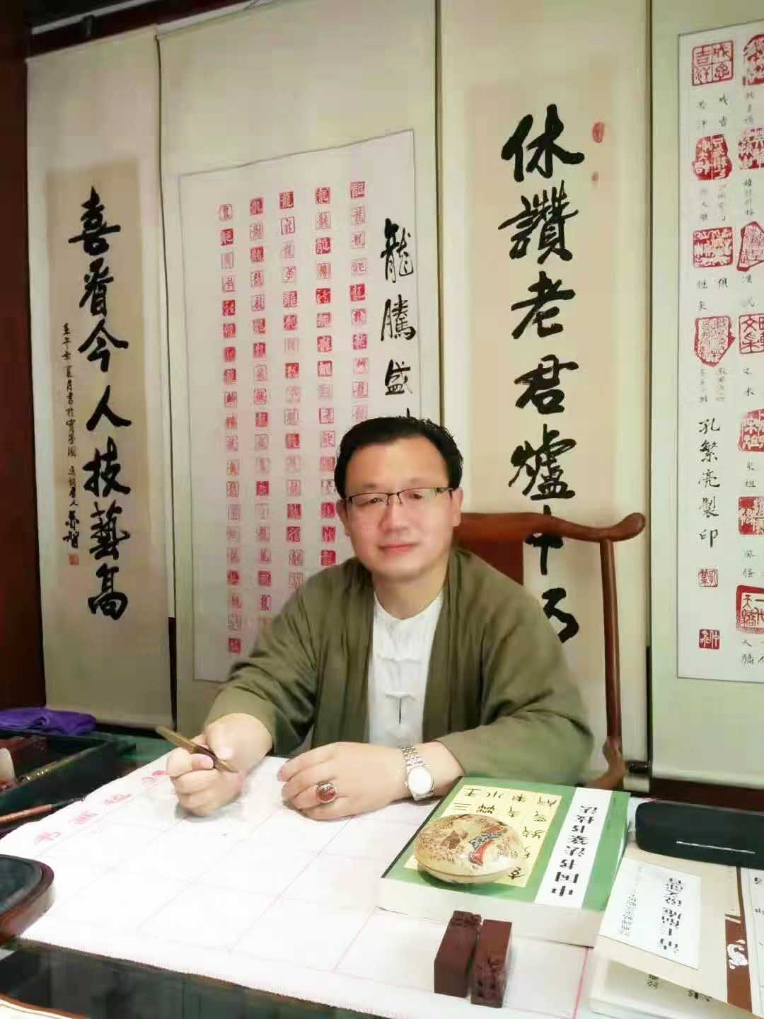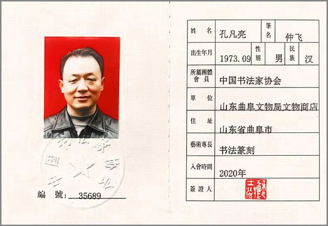 孔凡(繁)亮,字仲飞(孔子七十四代),中国书法家协会会员,一九七三年生于曲阜,自幼传承祖训,酷爱书画、篆刻,始临周、秦、两汉古印,其作品悠远凝重,古郁沁人。篆刻宗秦汉鉩印,刀法挺拔,巧夺天工,行云流水,非至好不能得其所刻。篆刻师法丁敬,参以己意,于流利中见朴茂,且以颜体行楷刻侧款,别有风致。每一印均可体味出作品倾注的人之情、思之绪、古之悠、今之畅、自然之美。曾拜醒醉教授学习书法篆刻,后得到多位篆刻艺术界前辈之言传身教,经过二十余载不懈努力,心摩手锤,细致入微,古朴典雅,耐人寻味,藏锋处微露锋芒,露锋处亦显含蓄,渐成其篆刻艺术独特风格。