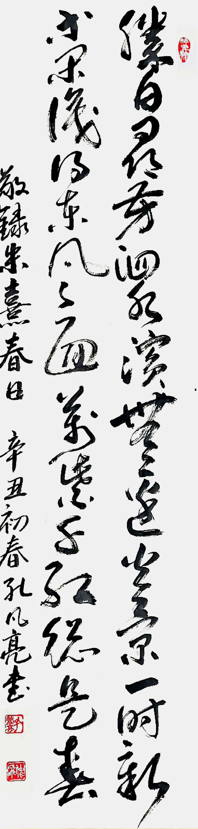 刻印有所大成,一是要看才华,二是要看机缘。孔繁亮先生生身书香门第,自幼承袭家学,所以才华横溢,为其作篆刻打下了极好的文化根基。再者,先生与书法结缘,又能与刀、玉、石结缘,远取诸物,近取诸身,缘识物象属性,当然可以依缘而成印章,遂心应手。刻一章就如在方寸之中,铺陈万千气象!由是孔繁亮先生不可多得的篆刻作品,是才华之助!是缘份而就!每得一印,妙如天成,可遇而不可求!这就是他的印章为什么件件独有杼机的重要原因!依心作印,可以剔除一切匠气,带着叩击山河的精气神,把朱文白文刻作得雅观中和,耐于品读,经由研究!