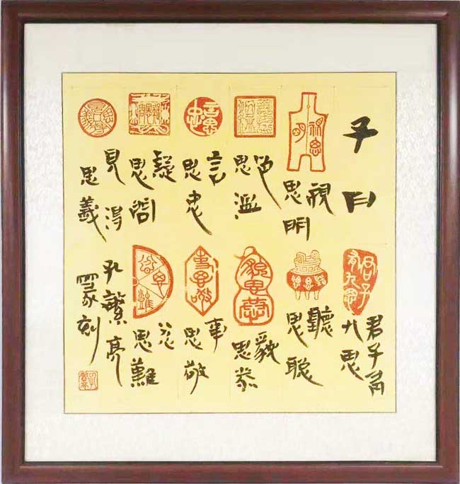 常言七分篆三分刻!书丹功夫需上乘。孔先生书法历练得炉火纯青,写帛书篆、铁线篆尽见挥洒自如!书法写得刚柔并济,方圆周备。其刀法者,所以传笔法者也!中锋行笔的要义,在篆刻的过程中,转化成冲的劲卓与切的凌利,腾挪机变的刀风,恰是天质自然的写法!所以他的篆刻作品极有轻重徐疾的节奏韵律,无论是线条铺陈还是空间顾映,都刻意出生动的动感。绝不作俗气,亦不见习气,一印一品,独一无二!