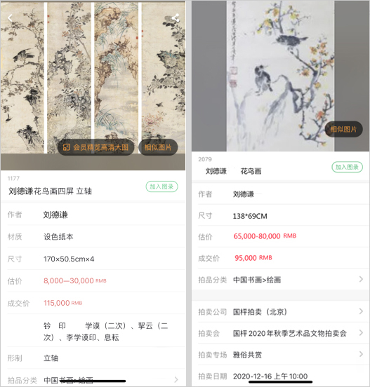 2021嘉德春季拍卖会四屏115000元成交(左)