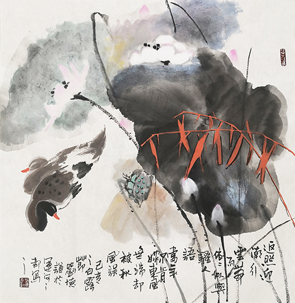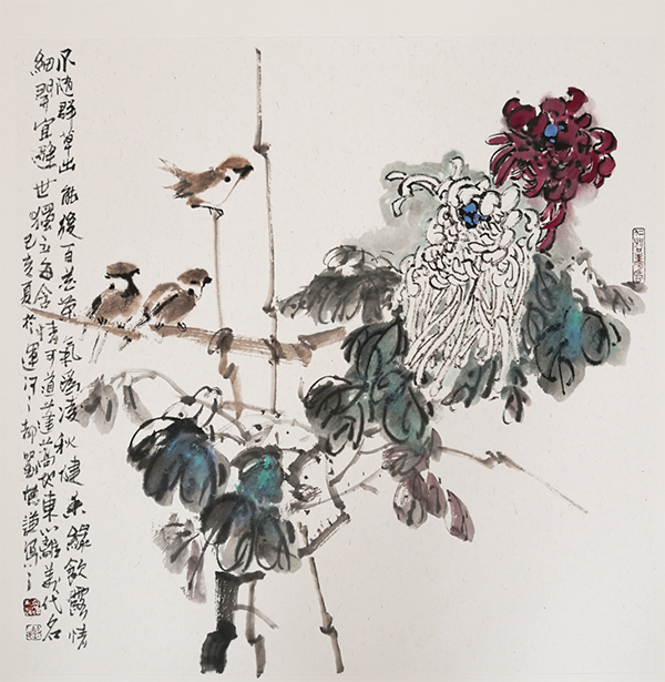 中国花鸟画集中体现了中国人与作为审美客体的自然生物的审美关系,具有较强的抒情性。作者往往寄情花鸟,通过笔墨抒写出自己的情感志趣,并体现时代精神。这也就使得他画的花鸟画,不媚俗、不做作、不矫情,走雅路、走文气、走和气,是迎合时代的花鸟画,也是老百姓喜欢的花鸟。
