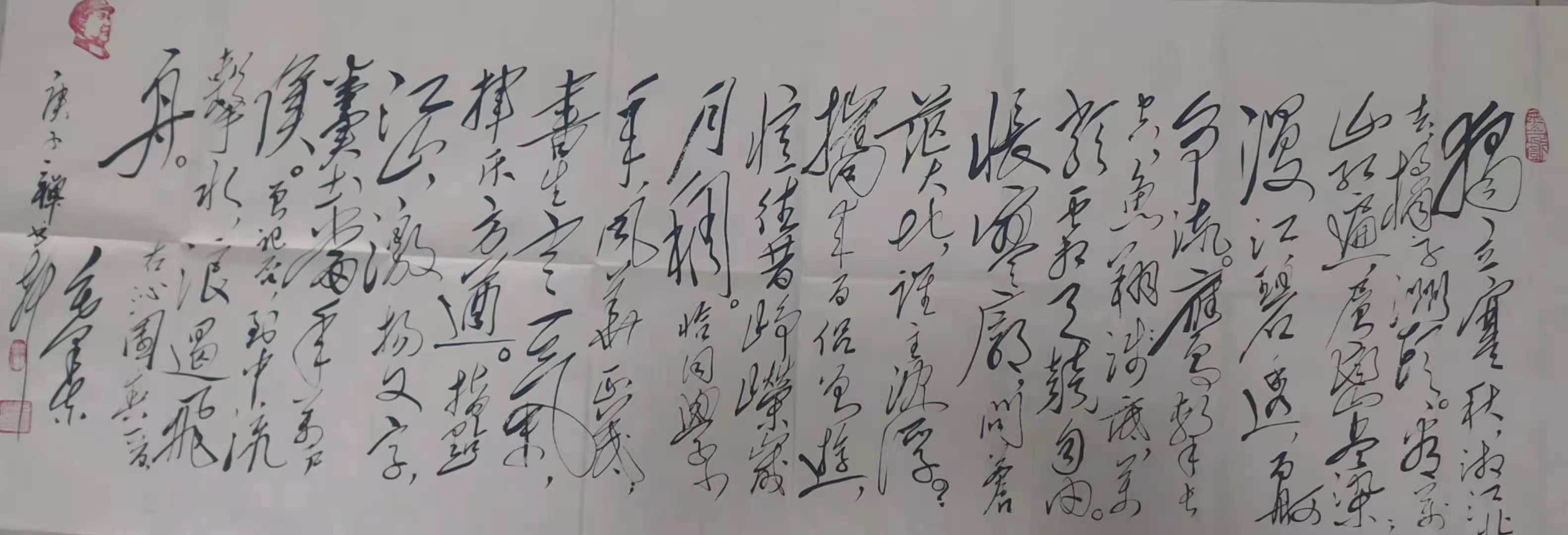 自幼酷爱书法艺术,习临张旭怀素大师狂草多年,形成了自已的书法独特风格。尤其对他书法艺术情有独钟,荣获中国第二届“金陵杯”特别金奖。