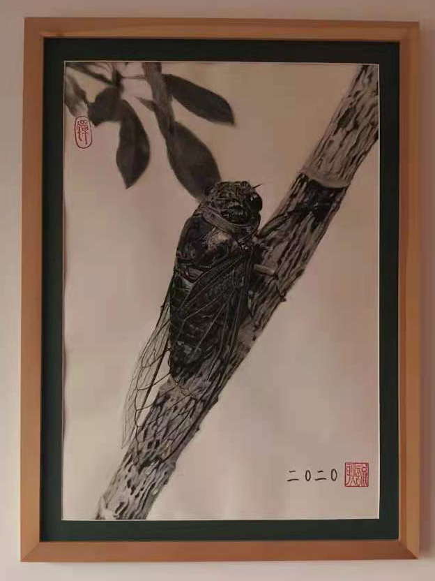 他擅长绘画鱼、虾、蝉系列,很多作品已被社会各界精英收藏,他希望他的作品能与更多的优秀人士结缘。