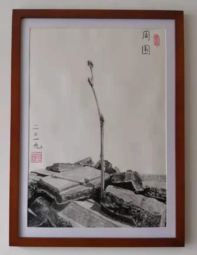 经过多年努力,他收获了自己的作画风格。画中既有素描的技法,又借助了国画的格式,中西合璧,浑然天成。