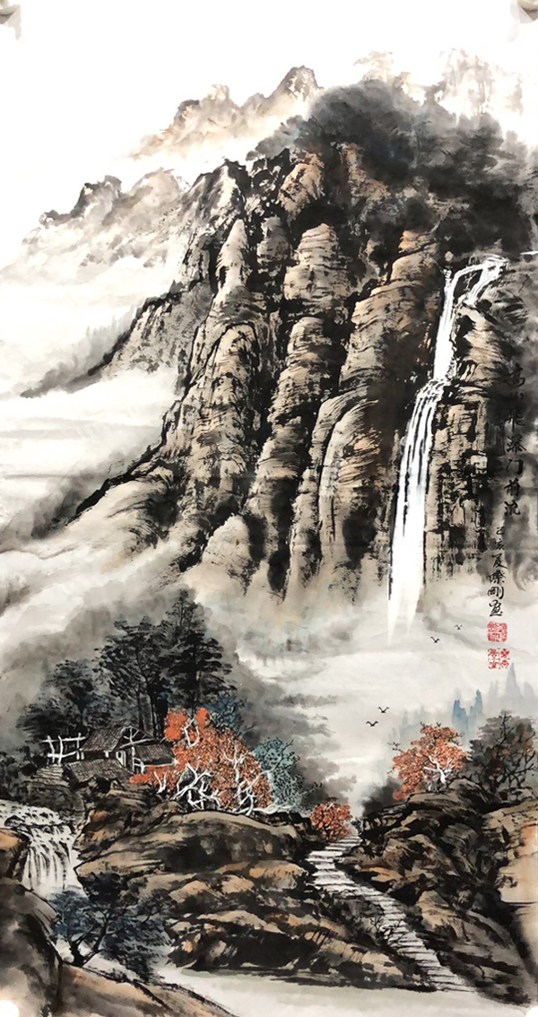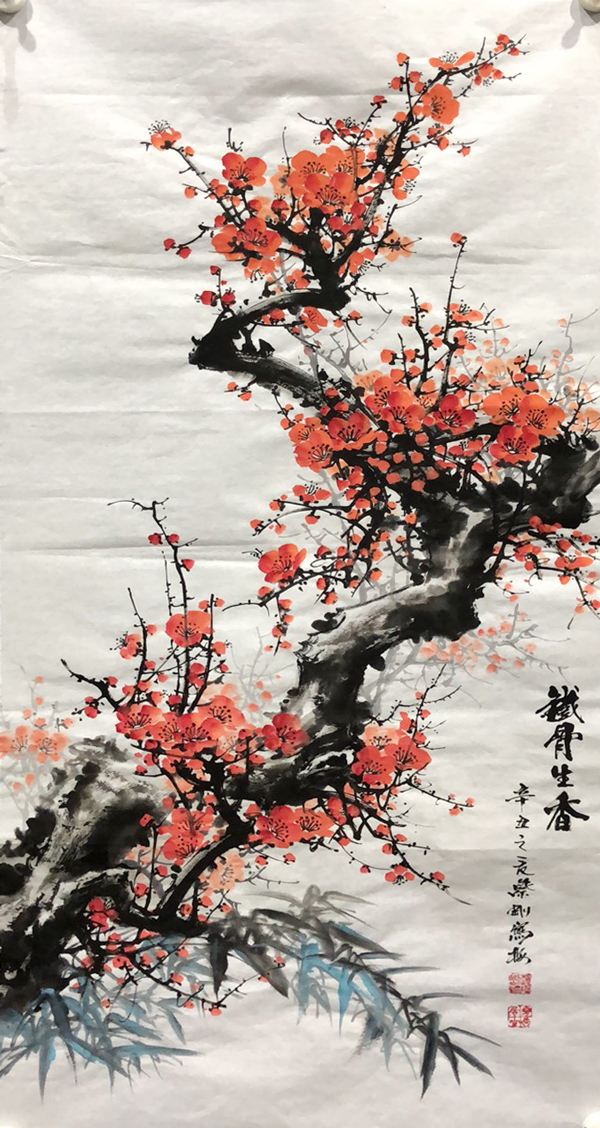 其功力扎实深厚,精于梅花,山水,偶画草虫等,作品创作态度认真,构图严谨,设色浓厚,作品不仅体现了中国绘画的传统基础,更在题材、构图、表现技法和意境上均有很大突破,且逐渐形成自己特 有的风格。作品风格充分体现大自然之美妙意境,也展现了了古朴清新、浑厚华滋、灵动传神的韵味。