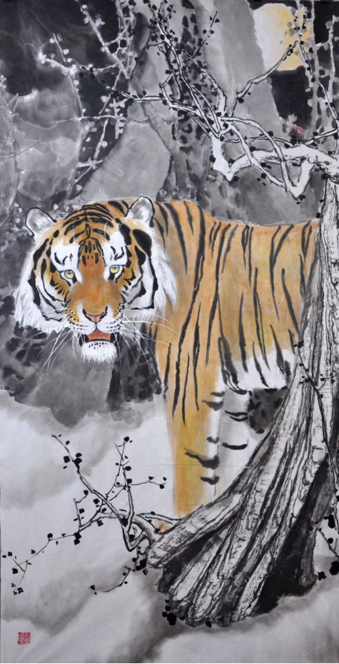 在他笔下,一山一石、一花一草、一水一涟、一鸟一兽、一禽一畜,无不情趣盎然,极富灵气。无论鸿篇巨制,还是尺幅小品,都是小中见大,画外有画,给人一种回味无穷的意境,体现了中国传统书画老、辣、奇、险的艺术审美特征。