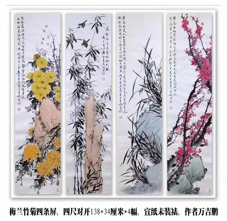 2008年 《梅兰竹菊》四条屏参加当代中国百位书画名家作品展荣获金奖;