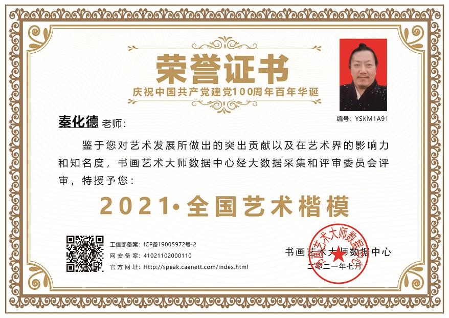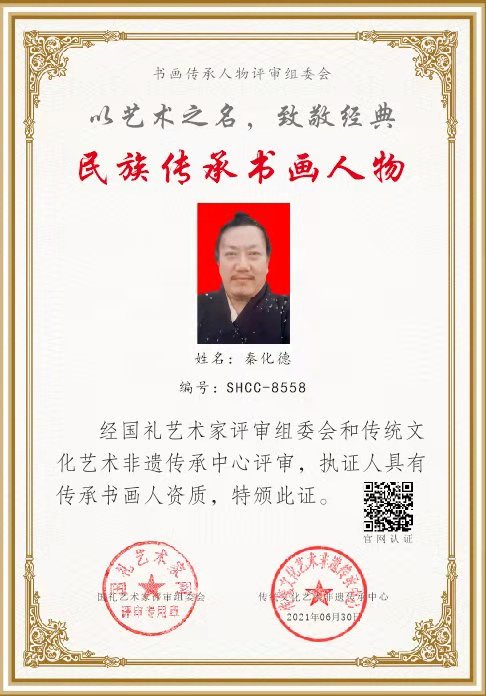 秦化德道长被评为2021年全国艺术楷模,民族书画传承人物。