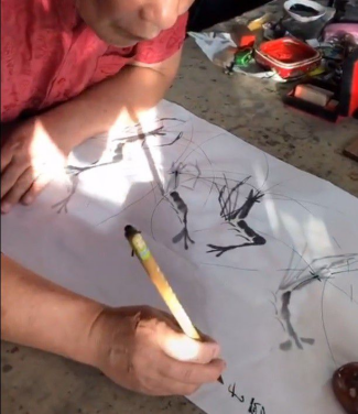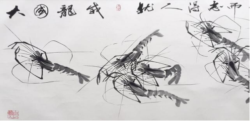 田子明老师每幅作品的亮点,就是他把虾加以人性化,借虾写意,借虾抒情,提炼出紧跟时代脉搏、宣传主旋律、传递正能量的主题,具有强烈的时代气息,这是他的创新,每幅都有新意,也是他作品的一大特色。他根据虾的体态、运动特性等给以人性化的理解,如能屈(曲)能伸、通体青白色等,赋予它人物化的活的灵魂。每次动笔之前,不是就虾画虾,二是先酝酿好主题,再根据命题安排构思画面。所以,每创作一幅新作,都是妙趣横生,余味无穷。
