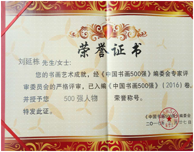 2016年,其作品《山海》入编《中国书画500强》(2016)卷。