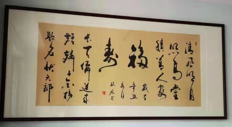 草书宁静致远被人民大会堂收藏,呈两次参加中日友好协会举办的书画交流活动。