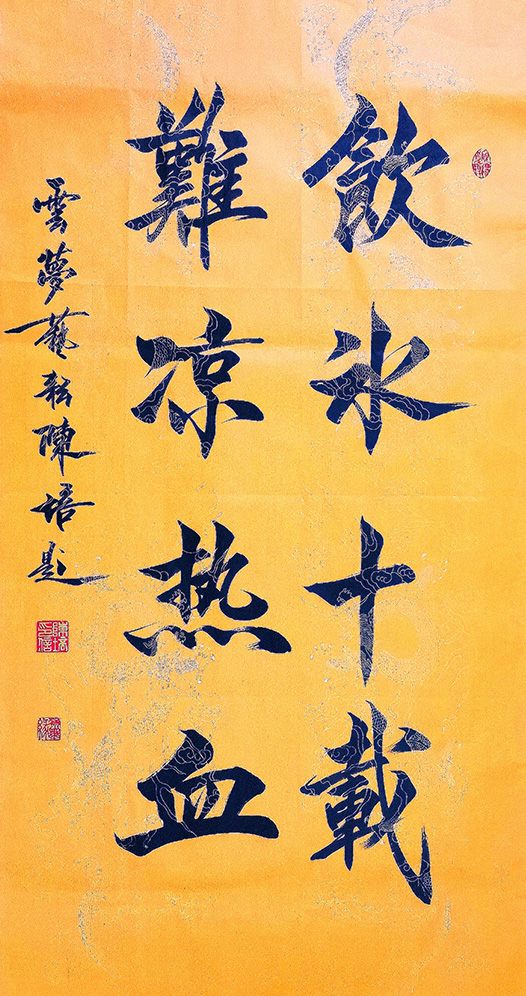 陈培军人出身哲慧思聪,史学渊识,文知感悟、美艺灵游,致力道、儒学,对中国传统文化和书法艺术有深邃的解释,为弘扬传统文化及教育作出了突出贡献。书如其人,源本正心,心正则笔正,作品温雅秀刚、道劲圆熟、飘逸空灵、儒雅平淡、颇见禅趣;行笔重视传统而不蹈袭传统,力追古法,有本有源,于微妙之间显露文人性情,一种正义与真诚,秀美与博雅之风徐徐拂来在!学习古人碑帖的过程中,将书法理论与传统文化进行结合,揣摩领悟书法的用笔及精髓要领,基本功扎实,通篇气息淡和空灵,字形洒脱俊秀,用笔遒媚飘逸,底蕴内捻而不泛年轻人的潇洒自然,临摹及模仿能力极强。