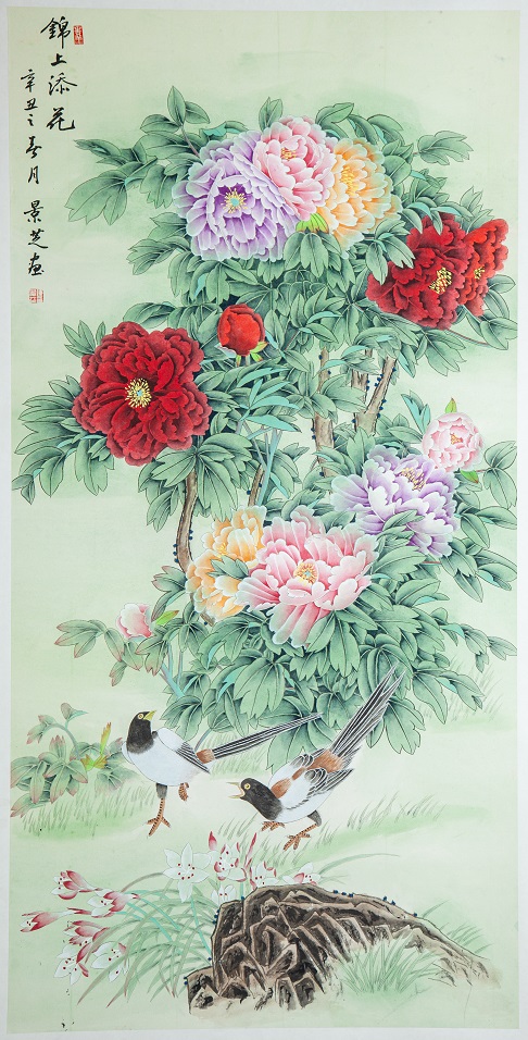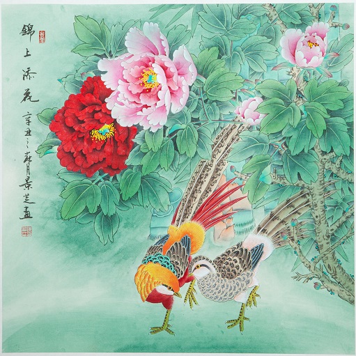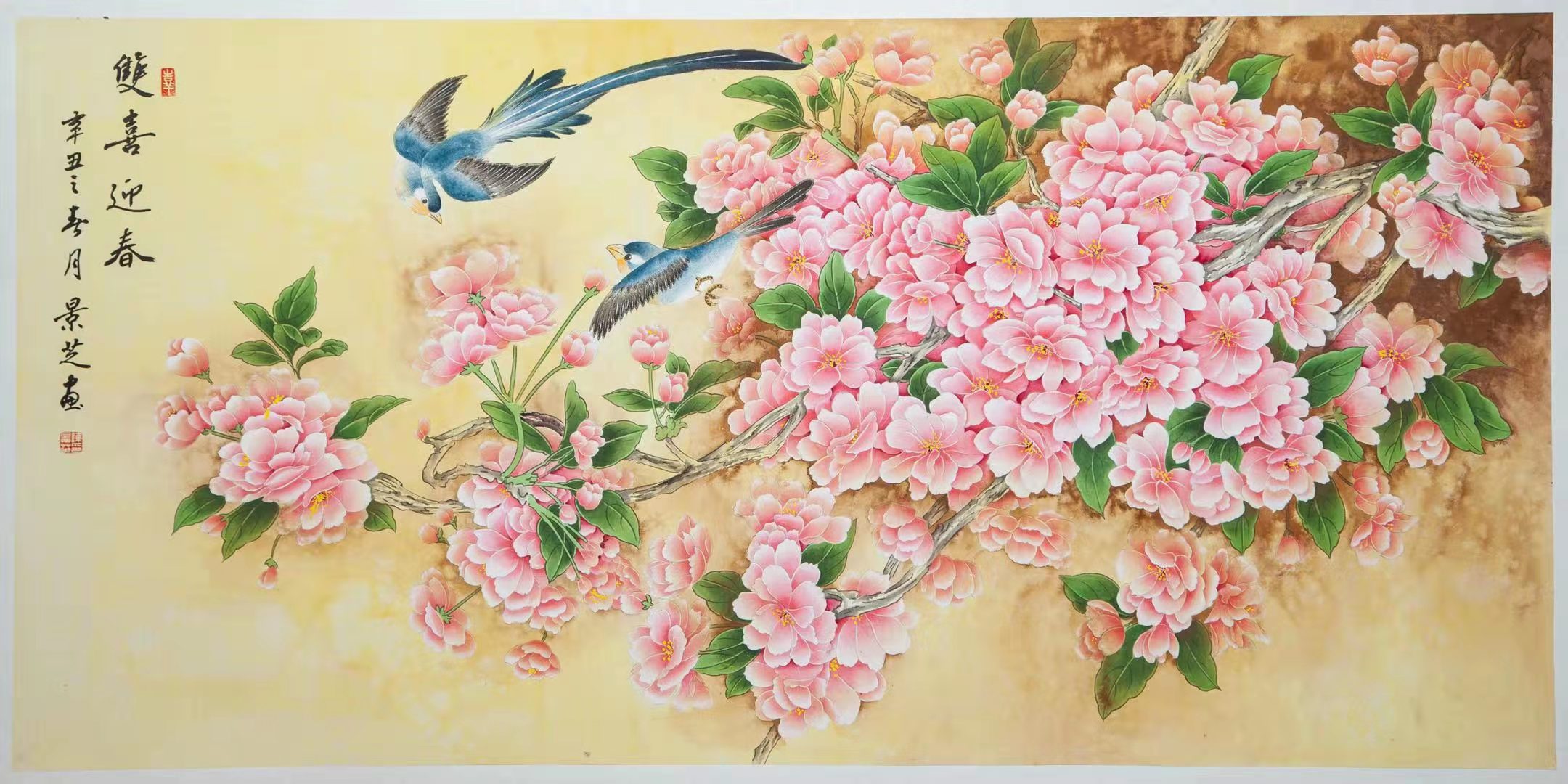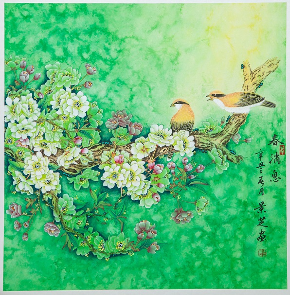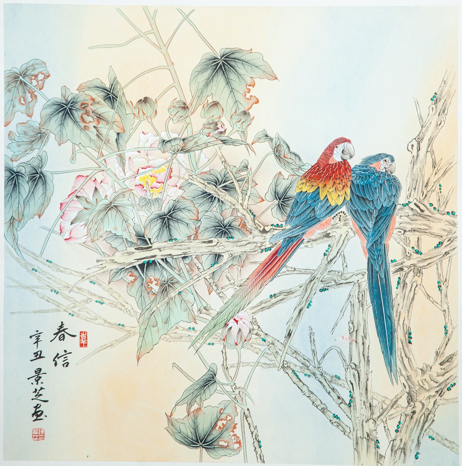 陈景芝主攻工笔花鸟20余年,在这20年里以花鸟为友、以花鸟为伴、以花鸟为师,在以花鸟为题材的艺术生涯中,探本穷源,探渊索珠的寻找中国的传统文化。在技法上不失传统而又独创新意,力求西为中用、三法四全。求意境美,物我两忘、天人合一;求形式美,标新立异、独树一帜;求笔墨美,匠心独运、不拘一格。