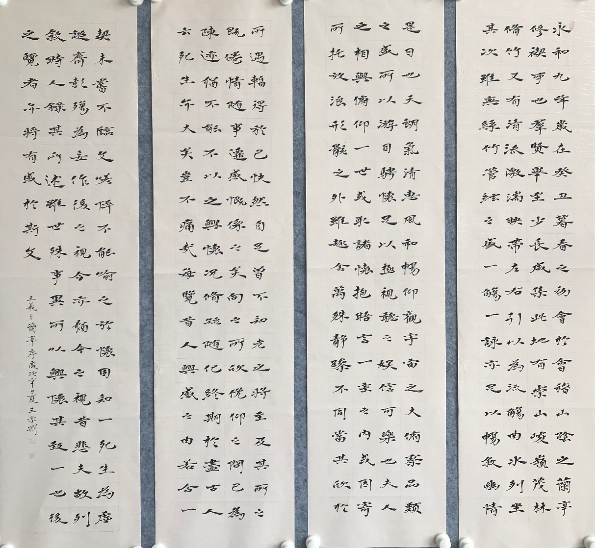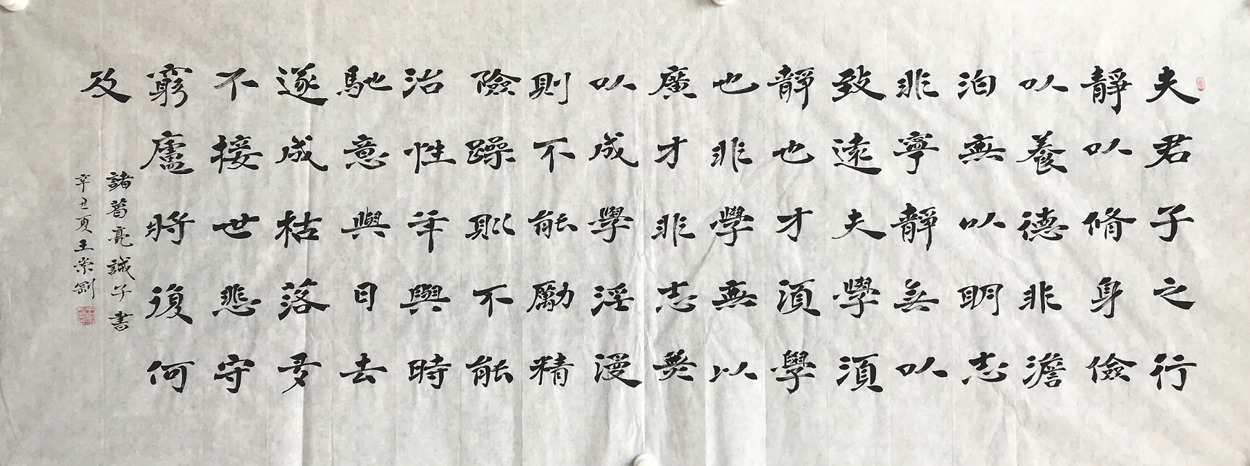 王崇刚老师多年来刻苦研习书法,临摹碑帖,在揣摩楷、行、草、隶等诸体的精髓前提下,通临汉、唐、晋、宋、魏各个时期的名家碑帖,集众多名家之长,经过几十年的潜心研习,使其书法艺术长足进步,形成了自己独特的风格。其书法五体皆能,尤精行楷,结构之严谨,间架之优美。其作品如行云流水,气魄宏大,意象开阔,字体婉若游龙惊鸿,起凤腾蛟,蕴涵着极强的体式与爆发力,潇洒灵动中而又不失本真与严谨。其作品得到了欧阳中石、沈鹏、刘艺、张海等书法大师的高度评价。作品受到了国内外书画专业机构和收藏机构的高度青睐和追捧。他的参赛作品屡获好评,国家级特别金奖20余枚个,银奖5个、收藏于国内外各大私人博物馆、美术馆,是极具收藏潜力的青年书法家。