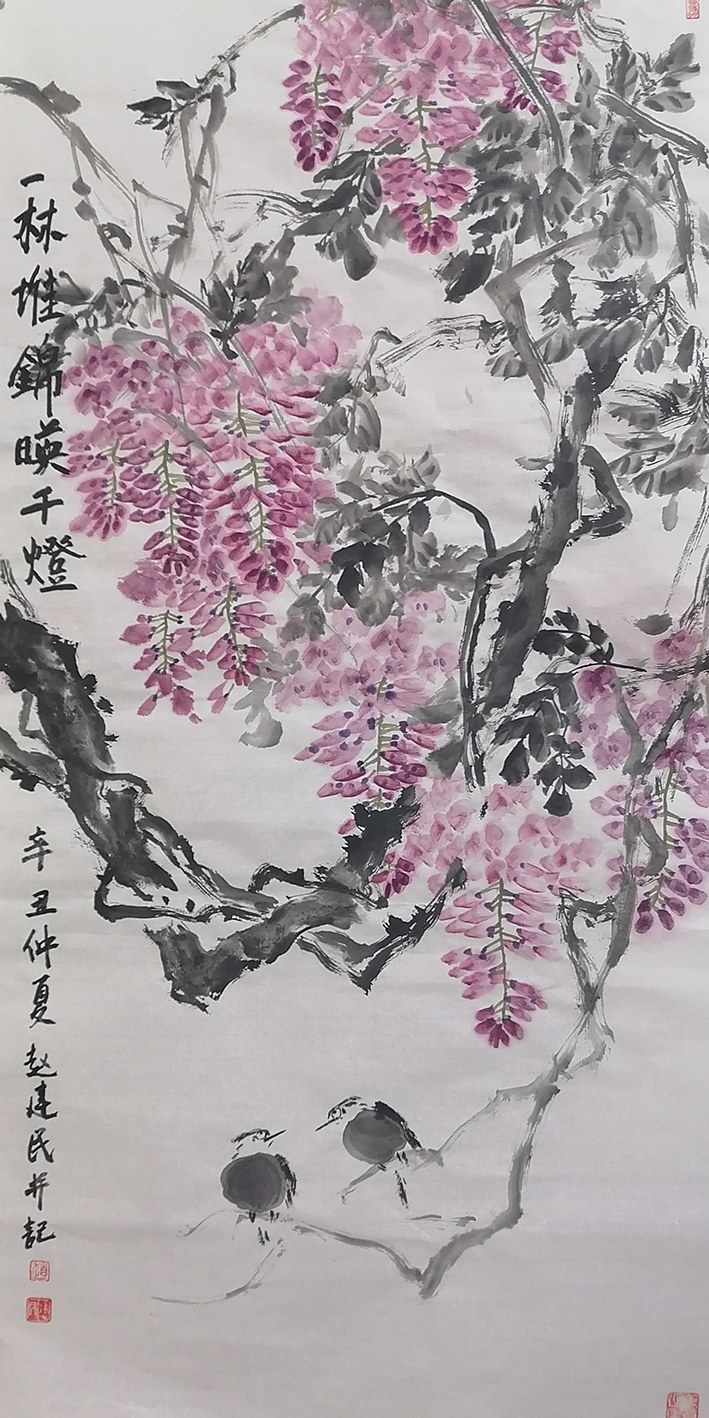作品《紫藤》入选 2016 第九届全国大写意花鸟画展;