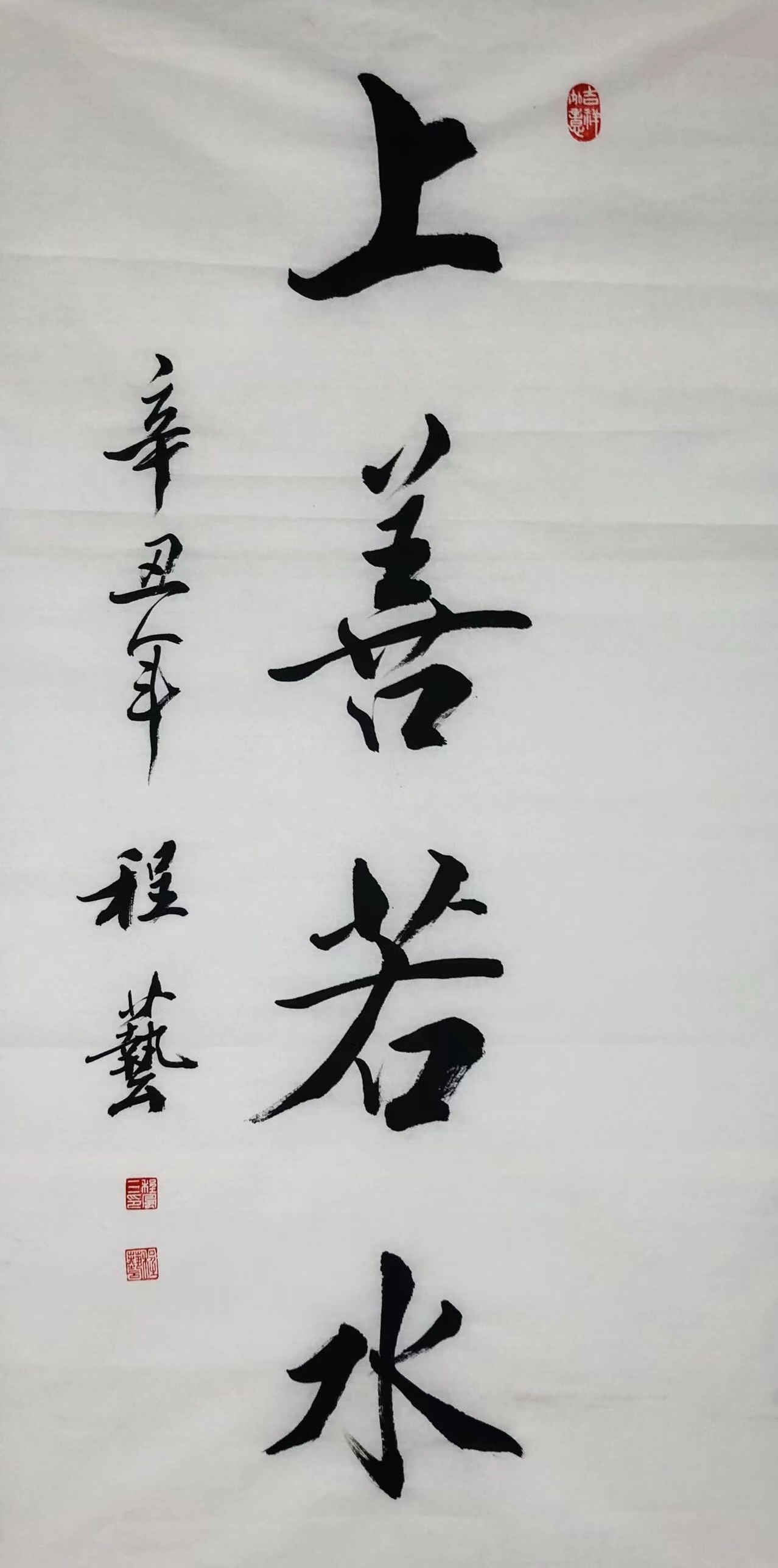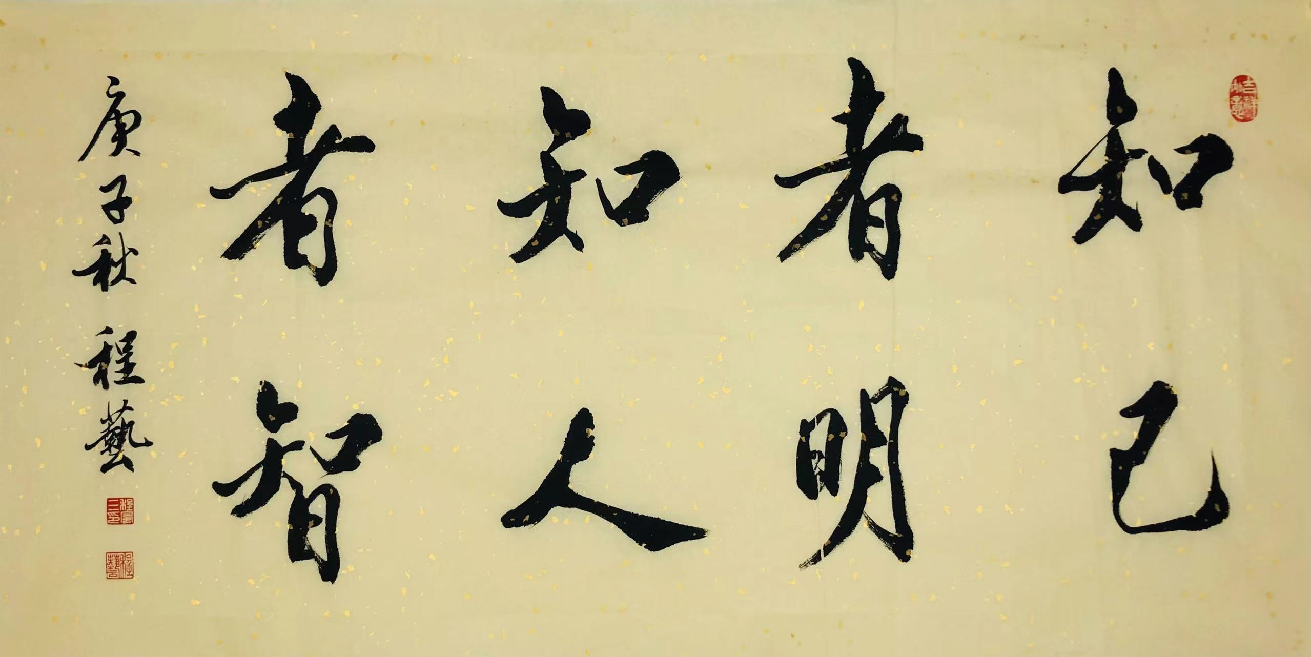 程艺不仅在国画领域有很深的造诣,在书法领域,临池不辍,得各家之长,精心钻研,渐成一格,以俊秀、灵动著称。习二王书风,学米芾笔法,字,道清怡,意味悠长,深得全国书法爱好者称道。他的书法笔力遒劲厚重,行笔映带丰腴,笔画粗细相衬,结体平稳严谨,墨酣意足,表现出优美的韵律和深远的意境,书法风格典雅遒丽、豪迈潇洒、明快大方,显示出深厚的功底与良好的人文素养,创作出了最具时代特征的作品,在业内具有很大影响力和超高人气。