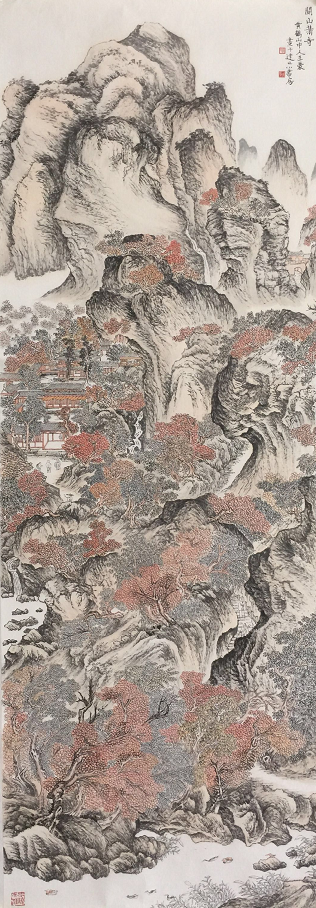 雁廷从四王入手,上追宋元范宽、王蒙,近学陆俨少、黄宾虹诸家,逡巡往复,愈研愈深,在探索实践中须臾不离传统和法度。自拜篆刻家段玉鹏先生学习篆书后,在创作上除皴、擦、点、染常用手段外,注重增加“写”的成份,使线条更有质感,画面更加醇厚。始知雁廷的画开始从平面图向立体画掘进。