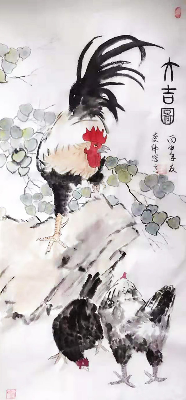 2017首届青岛职工美术家协会大赛作品“大吉图”获优秀奖。