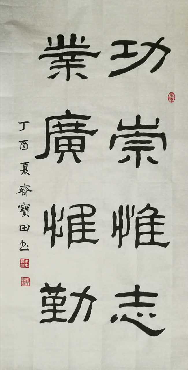 庚子新春,新冠病毒疫情牵动了全国人民的心。国家有难,匹夫有责。齐宝田翰墨抒怀,倾情助力战疫,以“战疫”为主题,充满激情创作出了多幅精品力作,用笔墨传达爱国之情。同时,齐宝田先生先后多次参加书法作品网络展播、捐赠、捐款及公益拍卖活动,先后将3万多元捐给湖北慈善总会、青岛市红十字会和贵州贫困学校。用爱心真情,携手聚力、倾情助力,战胜疫情。先后荣获"华夏艺术名人"、"中国当代书法艺术领军人物"和"德艺双馨"称号。