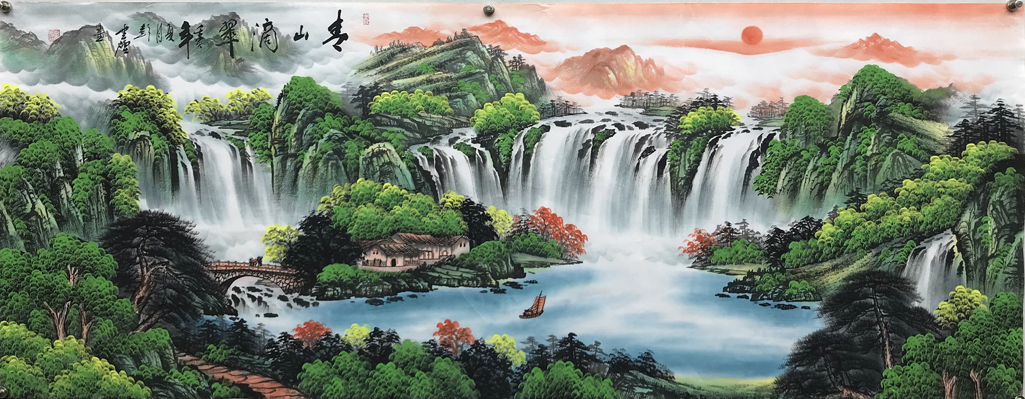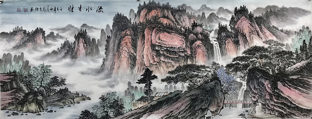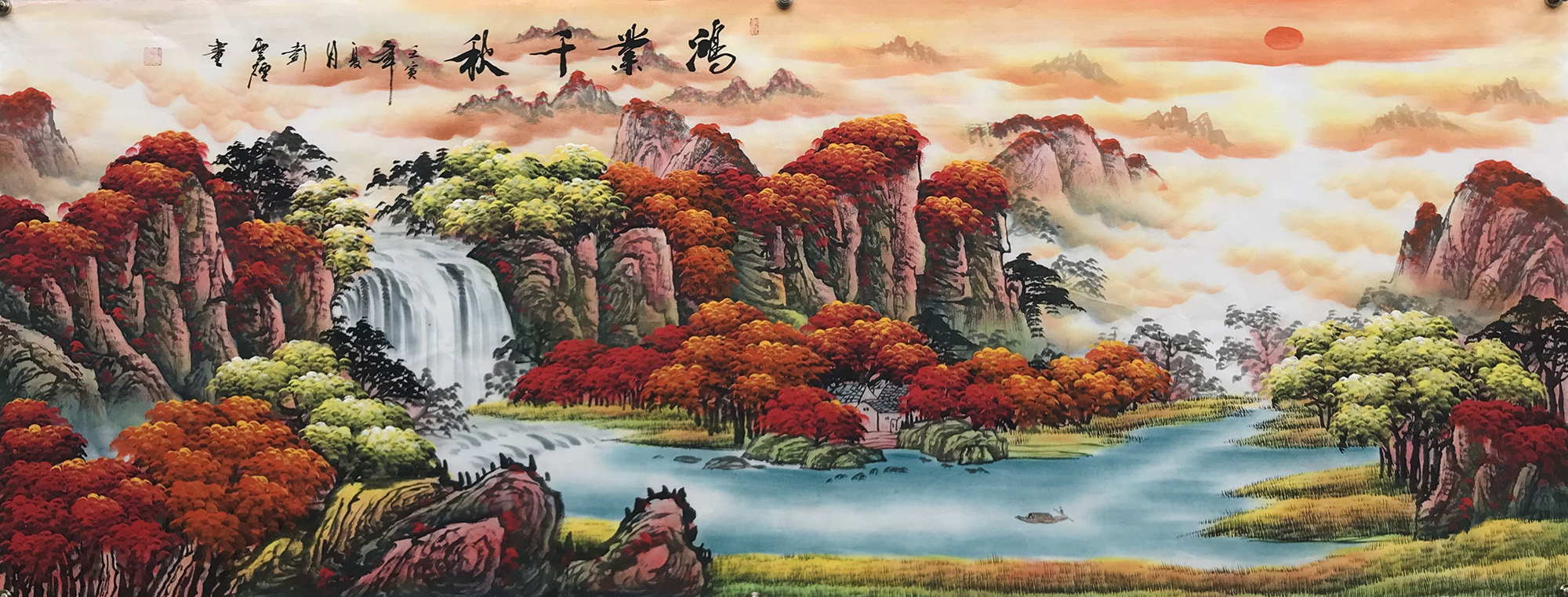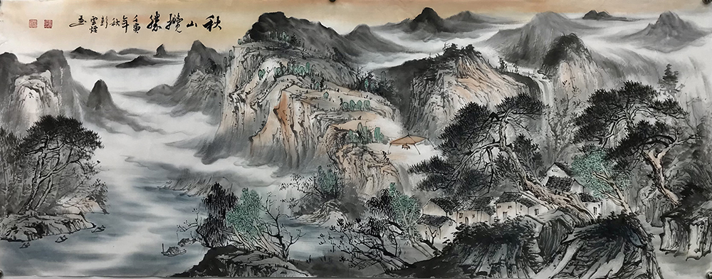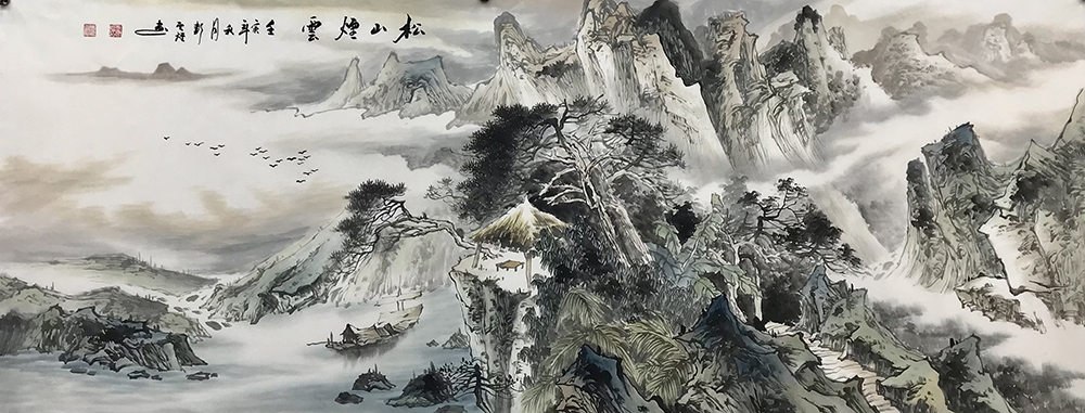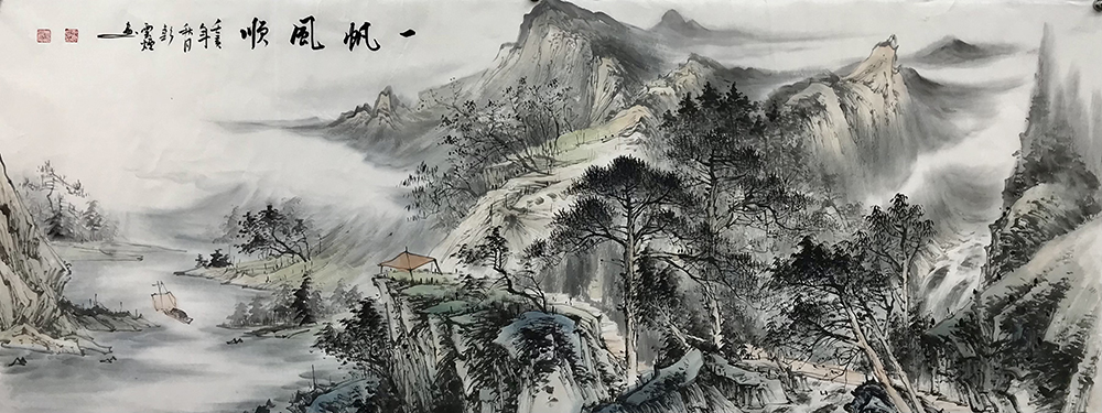 彭云烟的山水画作品从内容到形式,从画面到意境,从题材到风格,对传统国画进行了全方位的改革与创新,充满了艺术性,极具传统文人个性又饱含时代的精神,是传统艺术形式现代化的光辉典范。彭勇的山水作品学古而不泥于古,立足传统又突破传统。在表现手法方面,彭云烟山水画作更多地受到以道家理念为源头的讲意境,重气韵。强调个性自由和浪漫情趣等美学思想的深刻影响。作品立意新颖充分表现出宏大气魄和酒脱之气,深刻揭示出事物和人物的内在本质,折射出美学和哲理的绚丽光芒,山水作品所展现的精神世界浩瀚豁达,所抒发的主观情感,激荡澎湃,所承载的思想内涵博大精深,令人震撼,促人深思。如此大气的画作,充分体现出一个画家的胸襟,气质与眼光。