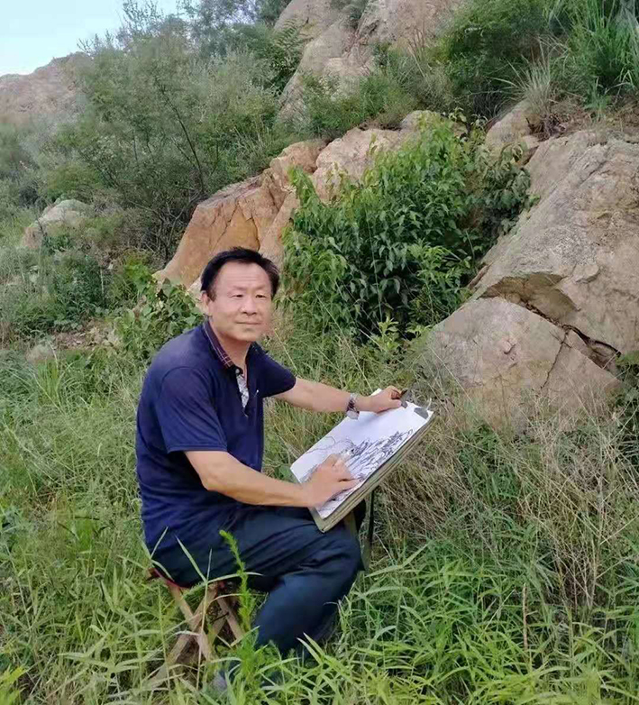 自幼酷爱画画,1978年任教后一直从事与美术有关的工作,利用假期等空闲时间与同行交流心得,1987年9月至1990年9月毕业于中国书画函授大学济南分校国画系。从那时起我对国画产生极大兴趣,决心珍惜时间,专攻山水画,一晃三十多年过去了。1994年遇到人生和画风转折点,拜师旅台著名画家夏一夫先生,成为夏老唯一的亲传弟子,从此专攻《枯笔焦墨画》。恩师的指点与鼓励,让我在枯笔焦墨画上找到灵感,2014年作品《山瀑》入选烟台市画院2014年迎春画展,并获优秀奖,2015年作品《独松》入选全国写意山水画《水墨彭城》。2016年在烟台美术博物馆和恩师夏老举办师徒展,2020年作品《山景》入选烟台市画院迎春画展。绘画将伴随我一生,努力是方向。