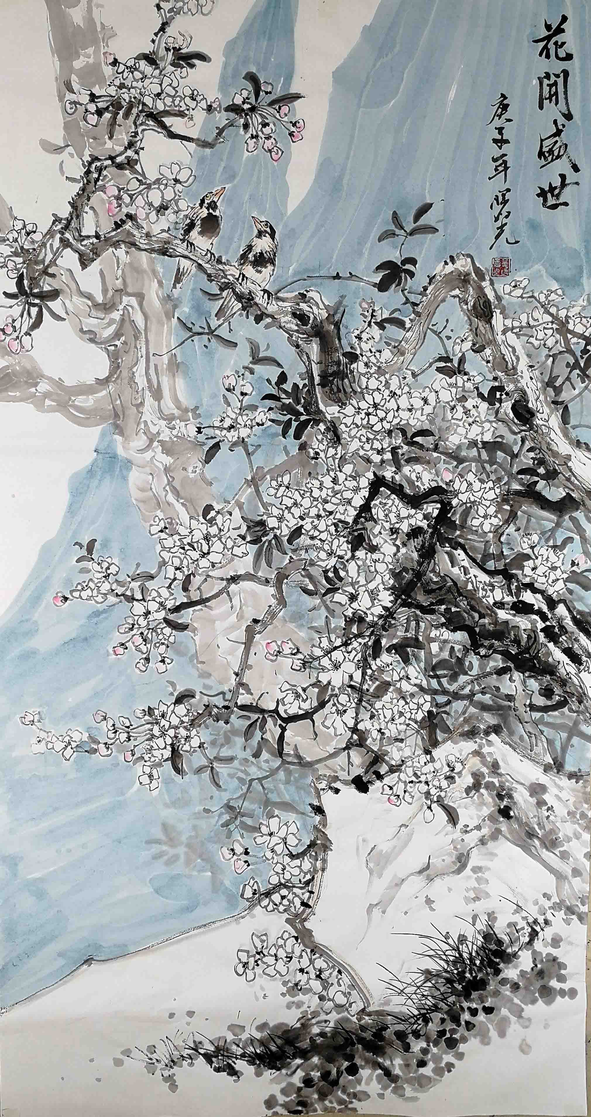2、《花开盛世》入选第三届中国当代著名花鸟画家作品展2009年;