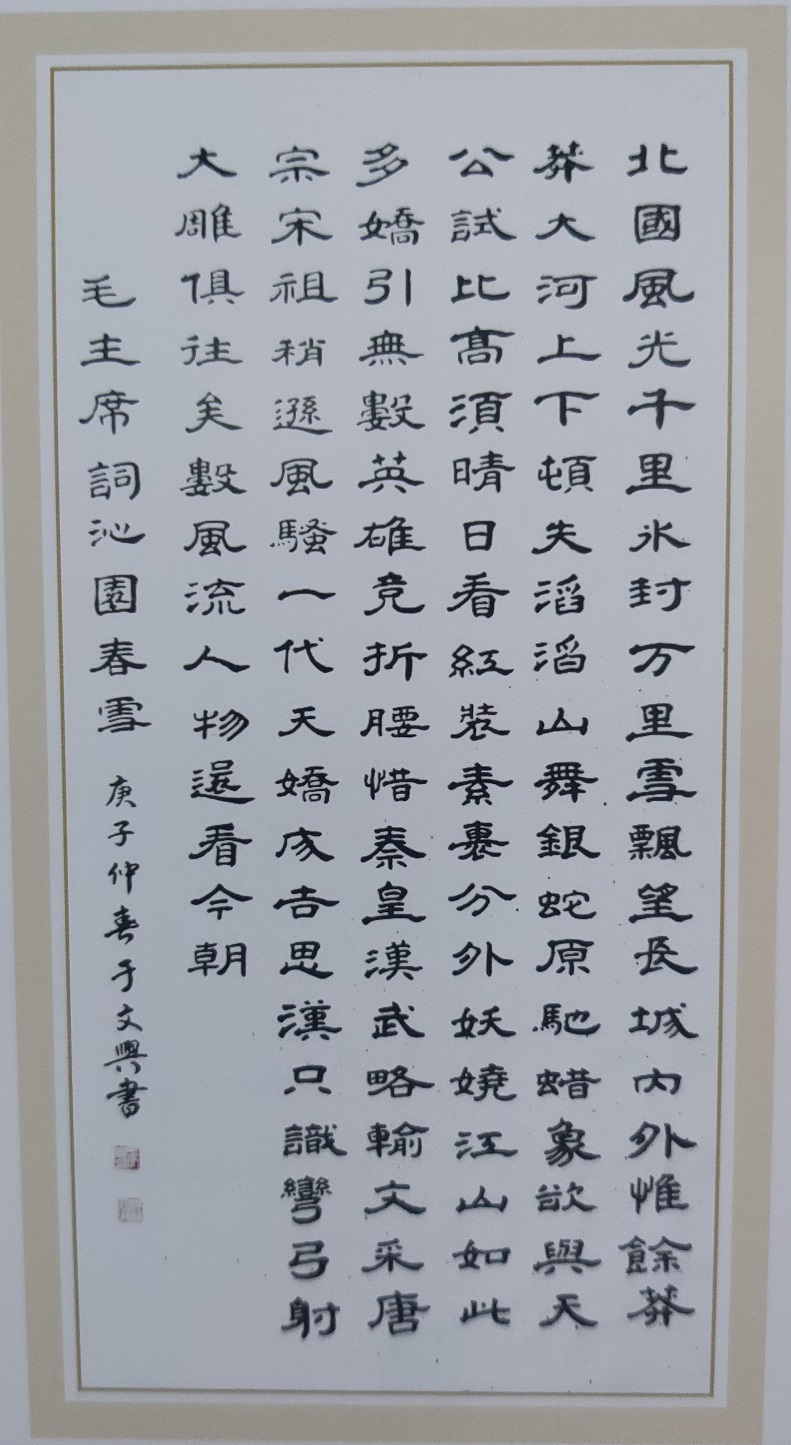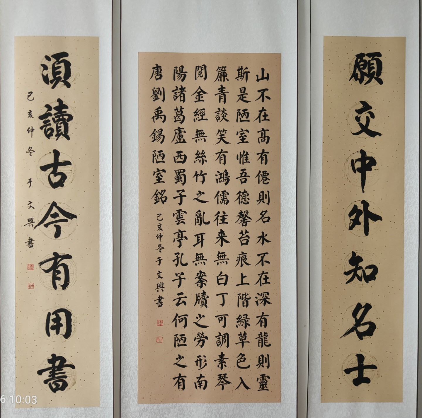 于文兴,字中亭,男,1964年2月生,山东省青岛平度市人。现为国家一级书法师,青岛市书法家协会会员,北京中宣盛世国际书画院会员。中国教育电视台水墨丹青书画院会员。中国世纪大采风书画院院士。从小跟于粒民老师学习书法,自颜、柳入手,进而临学“二王”,并通过学习先辈于松岩、于翔鸿以及清末何绍基等人的笔法,进一步领悟了传统书法的精妙。书法作品多次参加全国书法展赛。自2005年开始,主要从事书法教育和书法创作工作,是当地小有名气的职业书法家。2005年5月参加了医圣吴道子美术馆当代中国书画大赛,作品荣获银奖,入编《当代中国杰出书画家精品集》。2005年9月参加“岳安杯”第一届国际书法作品展获“作品提名”奖,作品入编《中国书画名家名作典藏》,2014年8月,作品入选“洪平杯”第七届中国重阳书画展 ,并入编《当代书画家名录》。2014年11月,作品荣获(APEC)峰会中国当代书画展银奖,入编《走向世界的中国当代书画艺术名家大典》。2015年7月,作品入编由《中国书画导报》主编出版的《中国书画名家代表作年鉴》。2017年6月,荣获中国好品牌HAOBRAND艺术人物榜☆影响力艺术人物,2017年8月,荣獲全国【书画传承奖】書法成人组银奖。2018年1月,荣获首届"书法印象杯"全国书法、硬笔书法大赛毛笔书法三等奖。2019年3月,正式被“伟大历程…庆祝建国七十周年”主题《中国邮册》收录。经主管部门严格审批,准予出版素有“国家名片”之誉的邮票、邮品、邮册。2019年5月,被国际品牌名家百科编入中心特邀编入首批上榜(国际)品牌書法名家百科檔案序列。认证编号:INART—SF011。2019年12月,作品入编由中国文化进万家工`委员会和北京中宣盛世国际书画院联办的中国文化进万家2020庚子年精品日历(年鉴)。