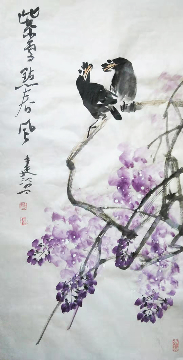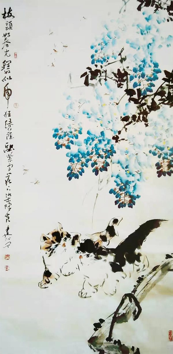 业余时间师从京师书画名家齐良迟,字沫淳,富察莊净等学习书法绘画,后拜书画大家孙菊先生为师,遂为入室弟子。研习动物画。其笔下猫、猴、狗形神兼备,栩栩如生,有呼之欲出之感,深受藏家喜爱。