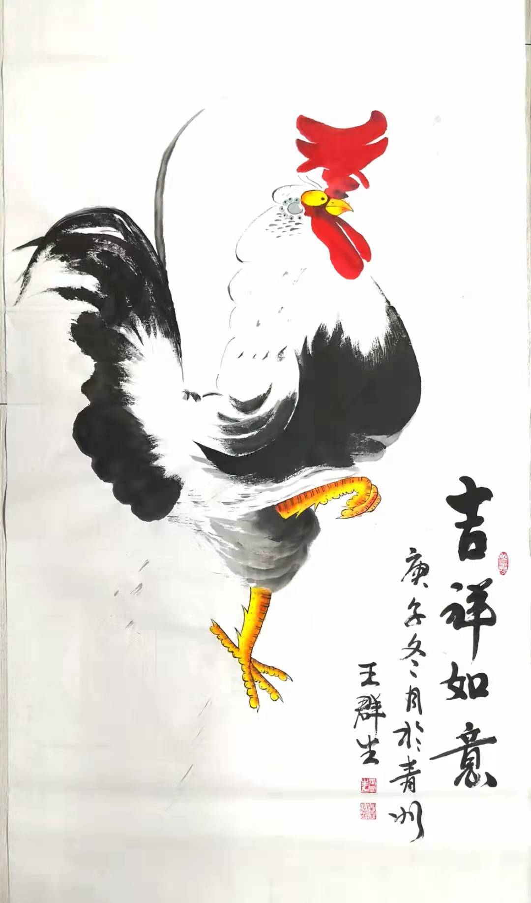 王群生,1963年出生,山東省青州市人。2014年在中国美院,主攻写意花鸟。最擅长写意公鸡图。潍坊市美术家协会,潍坊市书法家协会,