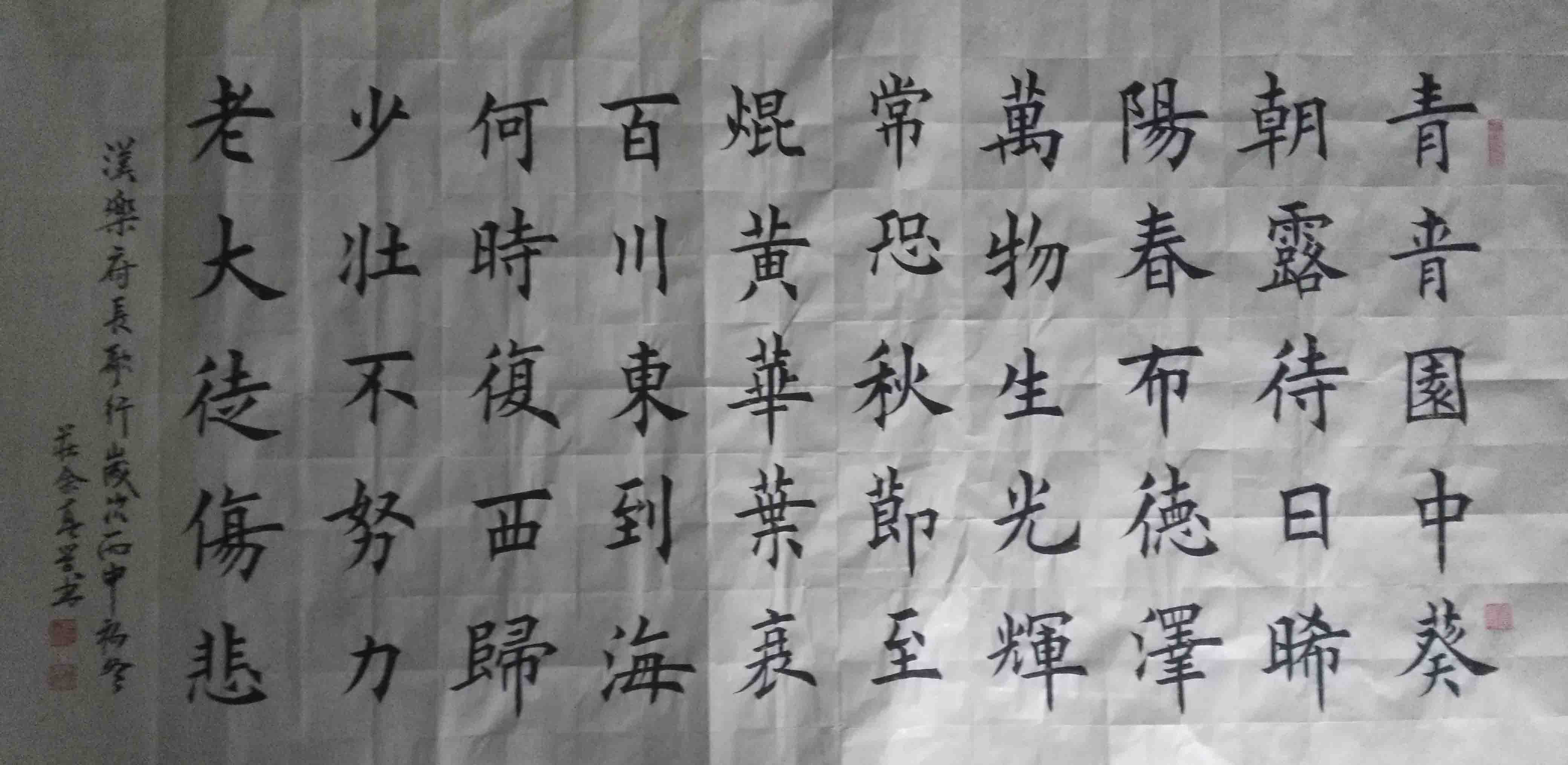 庄余真(庄余祯),男,汉族,1959年2月生,山东省莒南县人,大专学历,因受家庭文化熏陶自幼酷爱书法艺术,主攻欧阳询楷书,王羲之,王献之,赵孟頫行书。每日临书不辍,2018年以来得益于书法名家庄会记先生的悉心指导,对行书有了更深刻的领悟,2018年加入临沂市书法家协会,真正成为一名传承国学文化的书法传承者。