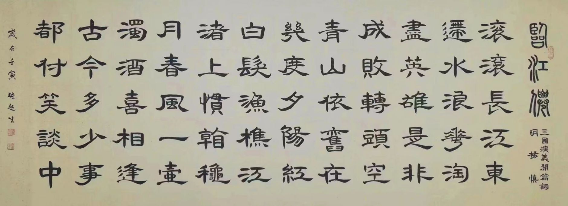 隶书作品《临江仙》藏品级别墨宝,2015年国内外篆隶书法作品巡回展入展作品,同时也是2016年登上央视晚会现场提笔作品。