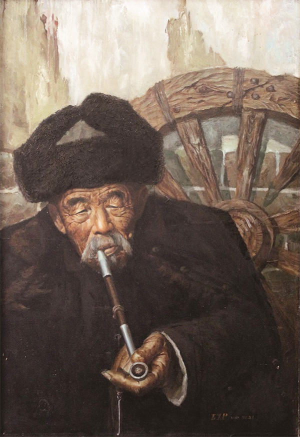 油画《轮》1990年,烟台艺术学校毕业创作(143*97)