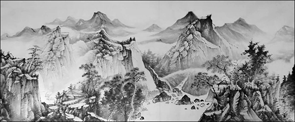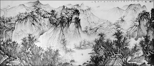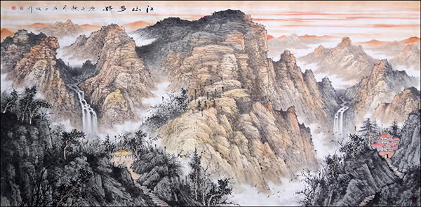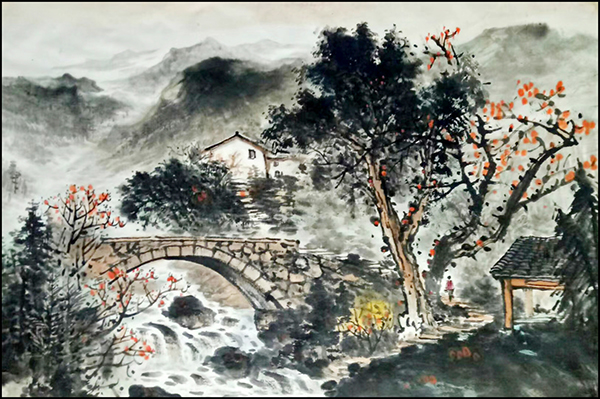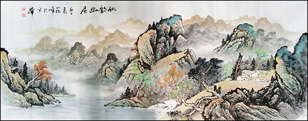 其山水画作,山高水奇、云雾缭绕,树木毓秀,帆影悠然。笔触细腻,画风清幽,带给观赏者的不仅是视觉上美的享受,更给人以心灵与精神上的净化。让人感受到大自然的和谐灵动与美妙,使人在欣赏画作过程中,感觉到山水的妖娆美丽,不知不觉置身于山水之间,与自然融为一体。