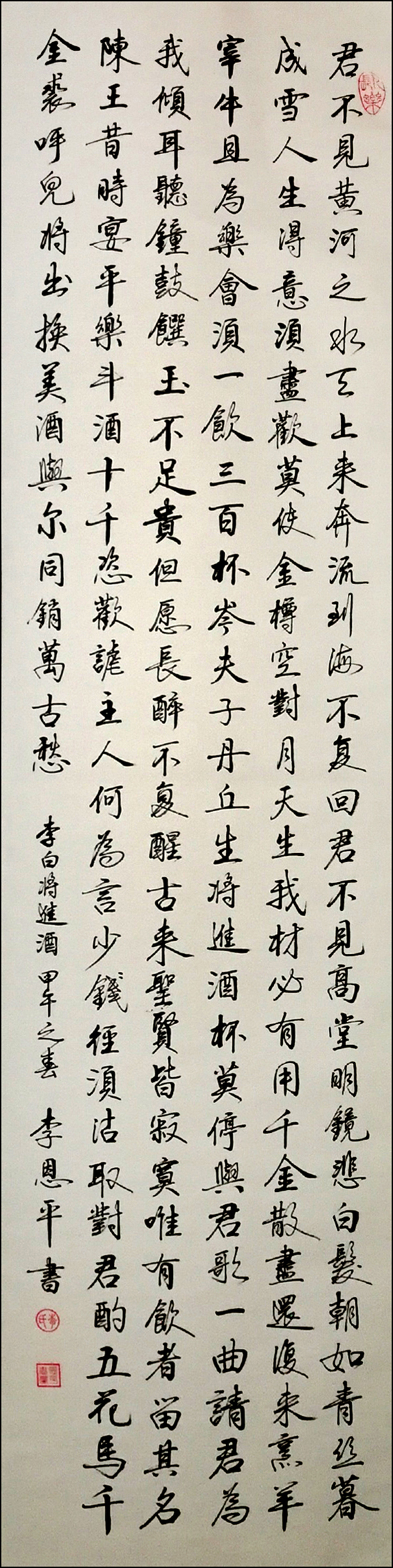 自幼酷爱书法艺术,几十年来临池不辍,追根溯源,传承千百年来中国书法之技巧,发展与创新相结合。其书法笔墨娴熟,自然流畅,飘逸洒脱,刚劲中见精神,开创一派行云流水之风格,受到社会各界喜爱。