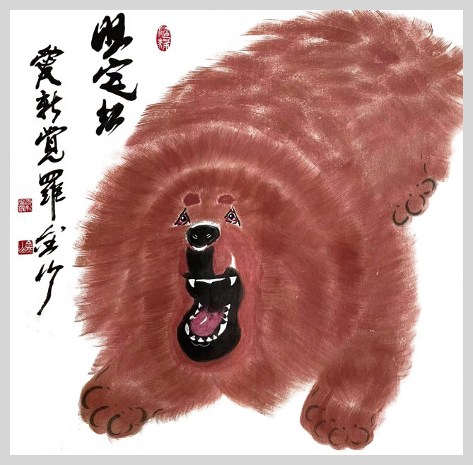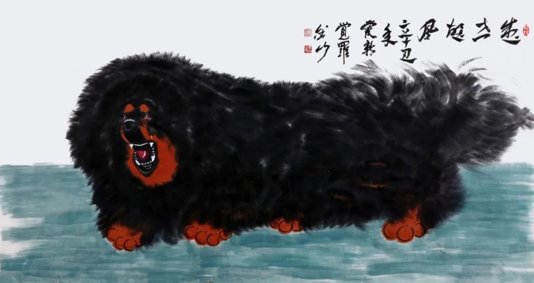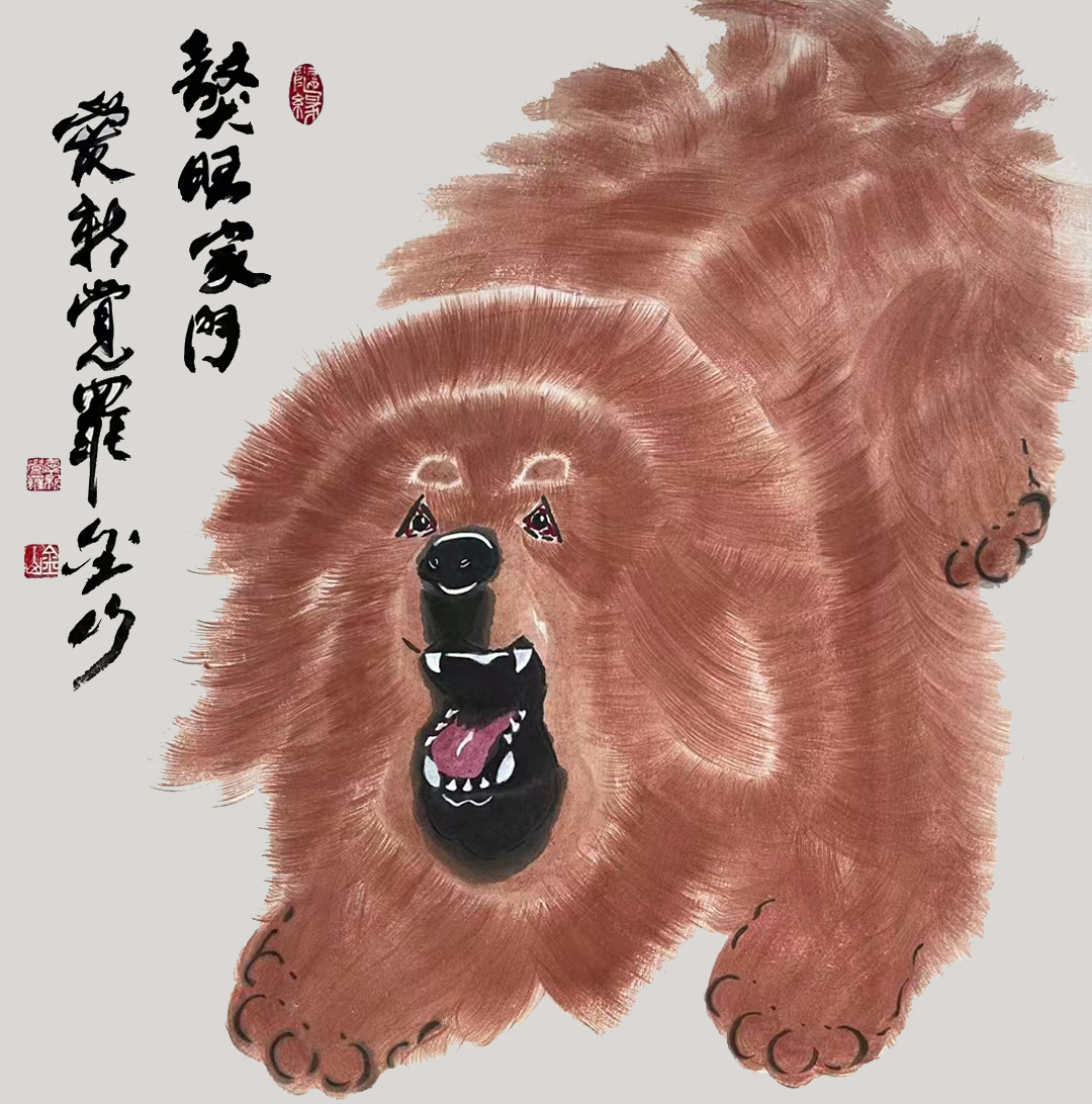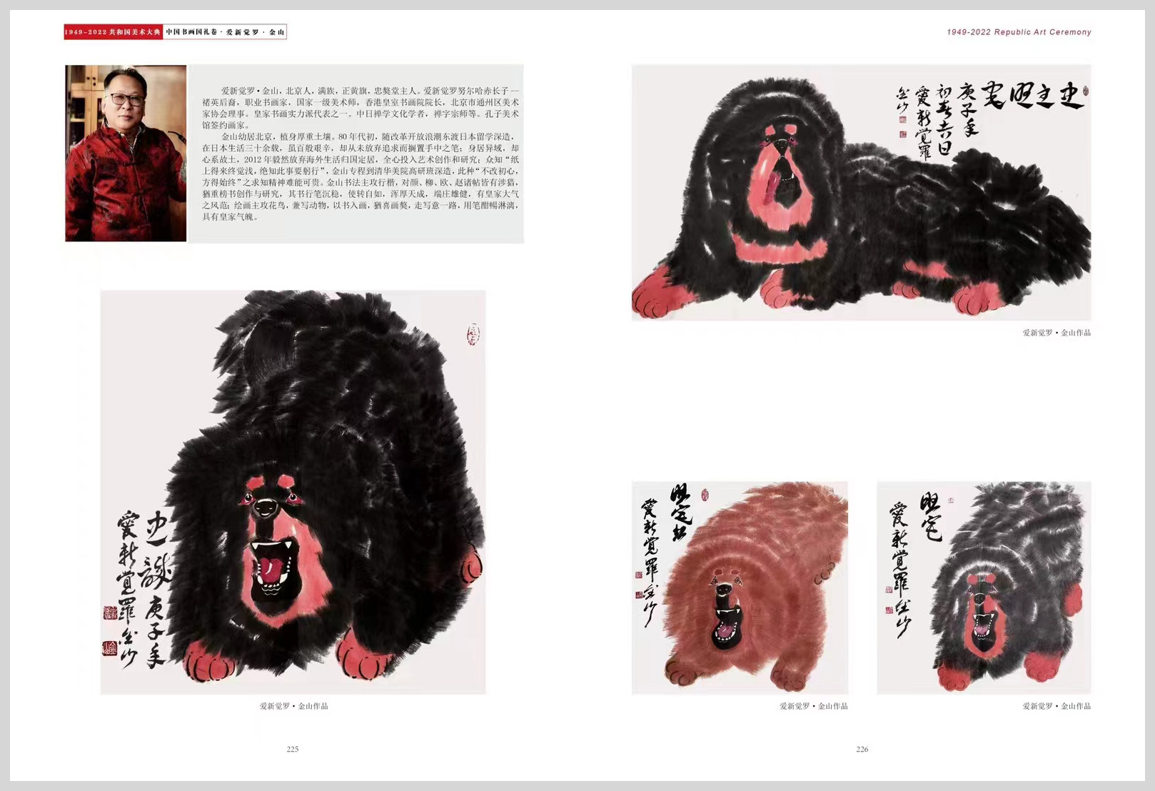 金山幼居北京,植身厚重土壤。80年代初,随改革开放浪潮东渡日本留学深造,在日本生活三十余载,虽百般艰辛,却从未放弃追求而搁置手中之笔;身居异域,却心系故土,2012年毅然放弃海外生活归国定居,全心投入艺术创作和研究;众知“纸上得来终觉浅,绝知此事要躬行”,金山专程到清华美院高研班深造,此种“不改初心,方得始终”之求知精神难能可贵。金山书法主攻行楷,对颜、柳、欧、赵诸帖皆有涉猎,猶重榜书创作与研究,其书行笔沉稳,使转自如,浑厚天成,端庄雄健,有皇家大气之风范;绘画主攻花鸟,兼写动物,以书入画,猶喜画獒,走写意一路,用笔酣暢淋漓,具有皇家气魄。