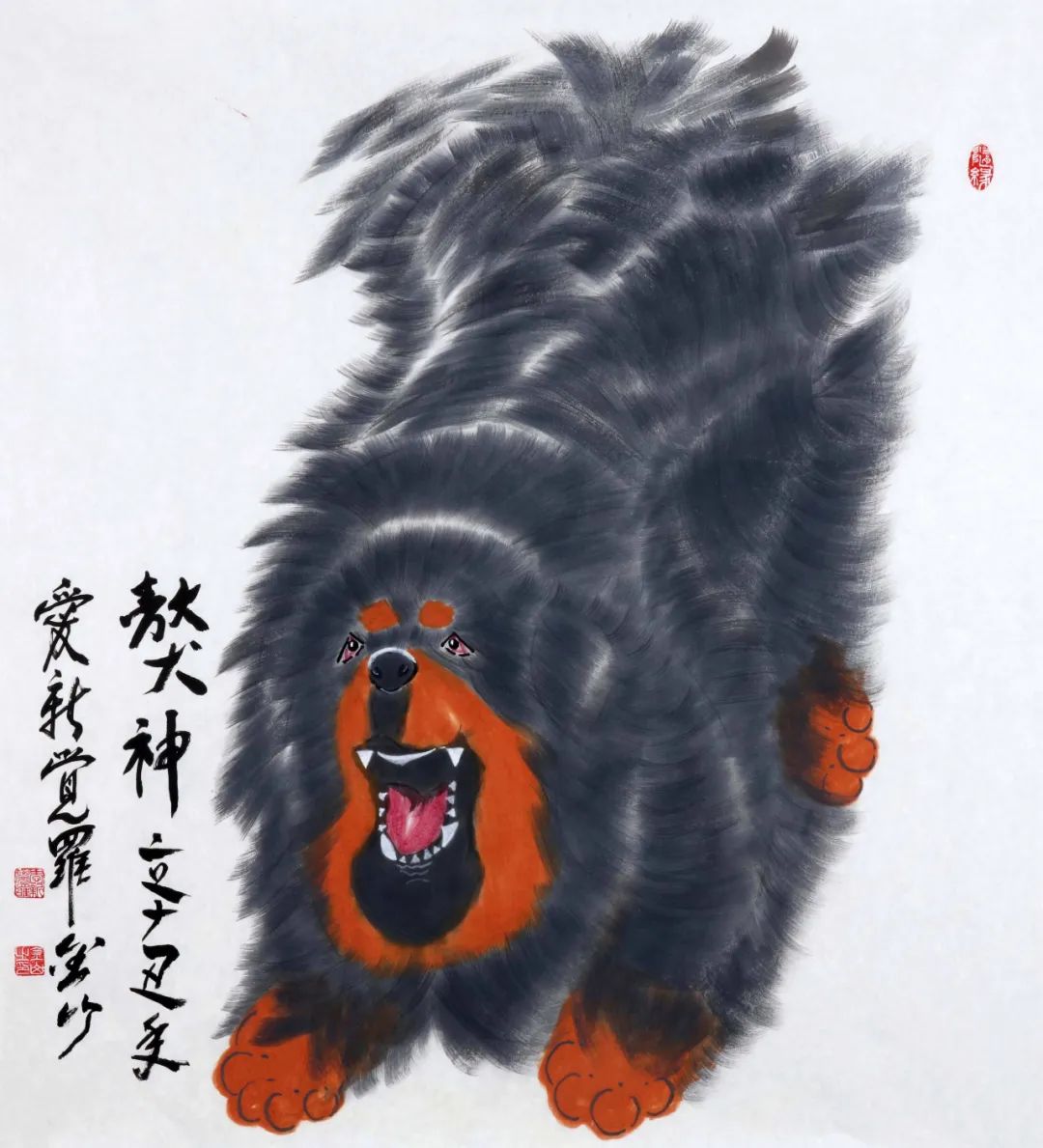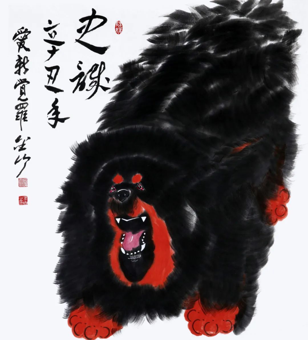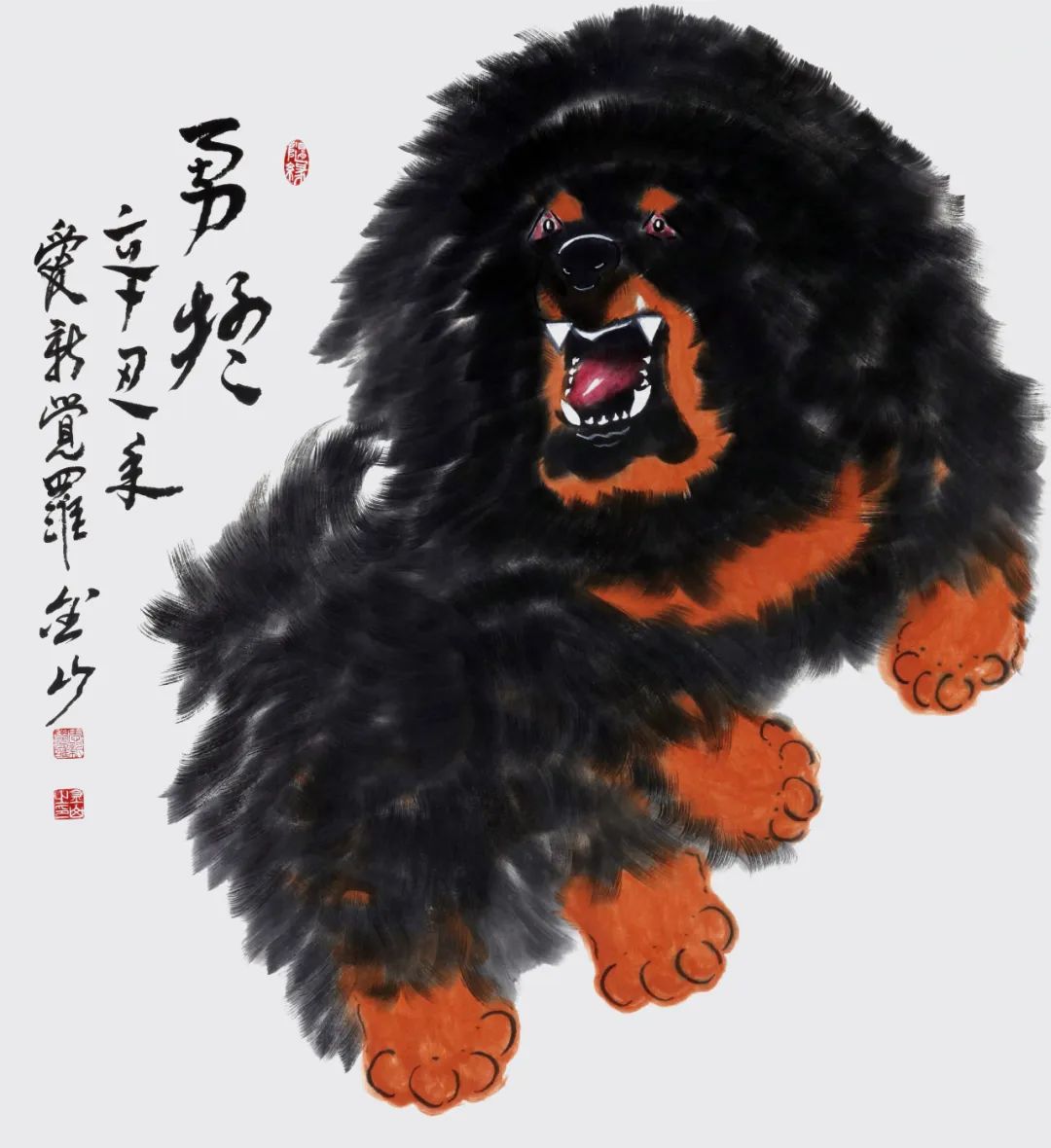 金山幼居北京,植身厚重土壤。80年代初,随改革开放浪潮东渡日本留学深造,在日本生活三十余载,虽百般艰辛,却从未放弃追求而搁置手中之笔;身居异域,却心系故土,2012年毅然放弃海外生活归国定居,全心投入艺术创作和研究;众知“纸上得来终觉浅,绝知此事要躬行”,金山专程到清华美院高研班深造,此种“不改初心,方得始终”之求知精神难能可贵。金山书法主攻行楷,对颜、柳、欧、赵诸帖皆有涉猎,猶重榜书创作与研究,其书行笔沉稳,使转自如,浑厚天成,端庄雄健,有皇家大气之风范;绘画主攻花鸟,兼写动物,以书入画,猶喜画獒,走写意一路,用笔酣暢淋漓,具有皇家气魄。