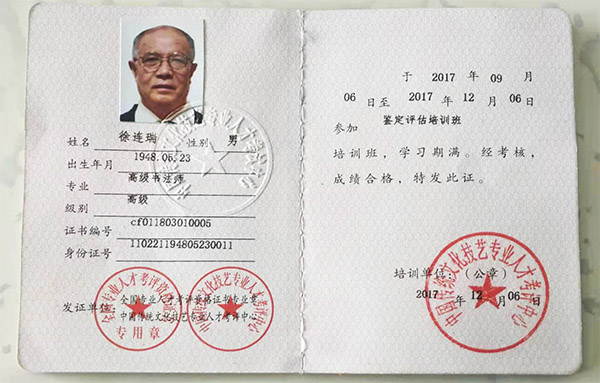 自幼喜爱书法和中国传统文化(易经,风水学)。于2017年12月份取得中国传统文化技艺专业人才考评资格证书。在退休后创作一本《指点迷津》,目前正在修稿,准备出版印刷。