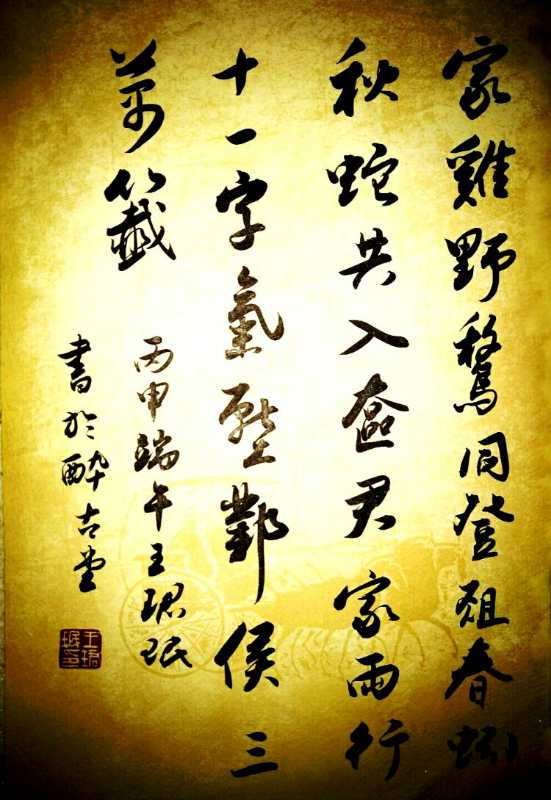 王珺珉,1983年出生于山东临沂,字乐璞,笔名明灯,号梅花道人,人送外号“圣手书生”“摘星圣手”。属琅琊王氏旧族,明朝重臣太子太保王璟第十九世孙。自幼痴于书法,通金石、晓诗词、爱对弈、擅梅花易数。14岁时因意外右手骨折,继而用左手习字。书法初学黄山谷,后临二王,遍习苏黄米蔡宋四家作品和三希堂法帖,以及近现代舒同、林散之、沈鹏等人作品。四体皆能尤擅行草,临习字帖多达几吨重。 因其天资聪慧 ,悟性极高 ,又好游名山大川 ,拜访隐仕高人,如今可左右开弓,双手同时写不同的字,让人叹为观止。其书法中带有强烈音乐节奏感 ,独具风格 ,自成一家。现为洗砚堂国学馆馆长、醉古堂书画院院长、珺珉玉器商行大掌柜、山东醉古堂文化创始人、中国实力派书法家。